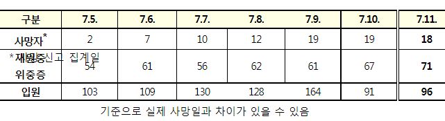 코로나19집계(2022.7.11. 0시기준): 확진 +1.3만, 사망 +18명, 재택치료 10.9만(집중관리 4천) 본문