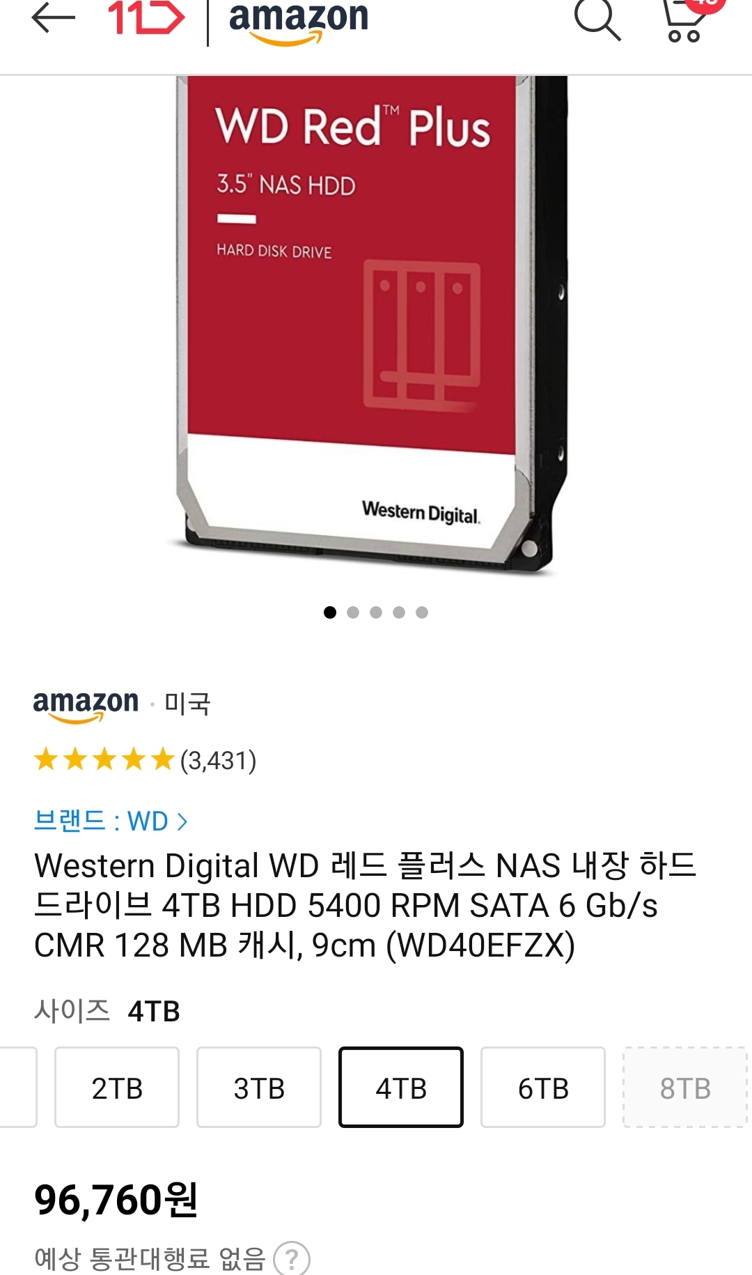 (11번가-아마존) WD Red NAS Plus 4TB CMR HDD (~8.7만원/우주패스) 본문