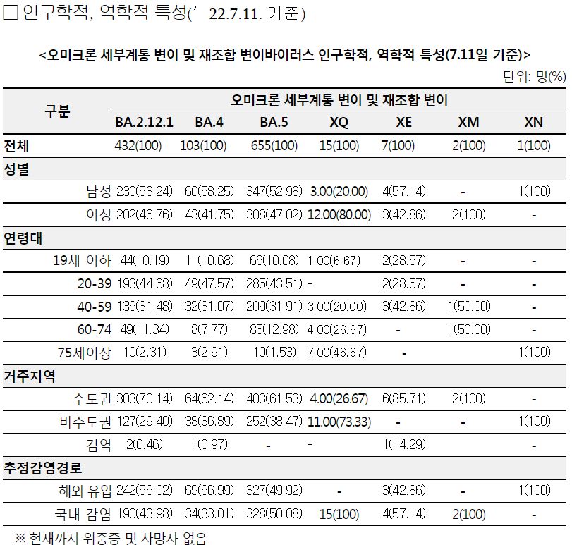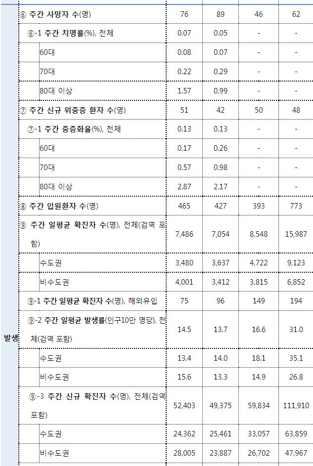 출처는 질병관리청 브리핑. 아래는 일부 발췌입니다.