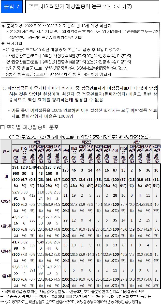 | 코로나19집계(2022.7.12. 0시기준): 확진 +3.7만, 사망 +7명, 재택치료 12만(집중관리 4.4천) (0) | 2022.07.12 |