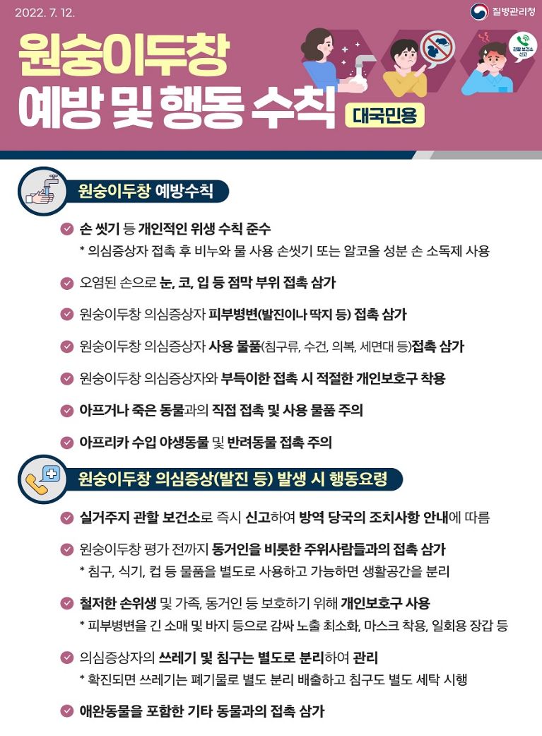 원숭이두창 예방 및 행동수칙(대국민용, 2022.7.12)