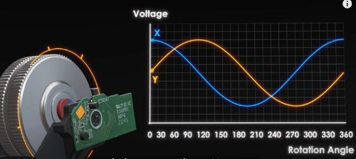 마그네틱(자기)센서방식은 휠에 작은 자석이 있다고 생각하면 된다. 그 자석이 뱅글뱅글 돌아가는 것으로 자기력변화가 생기고 그걸 감지하는 것.