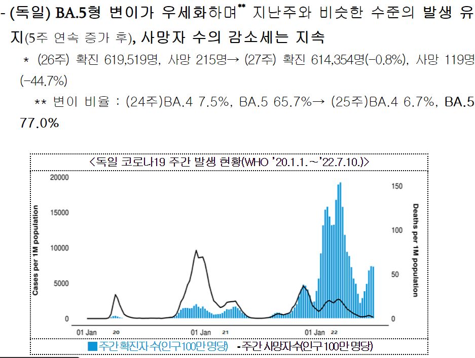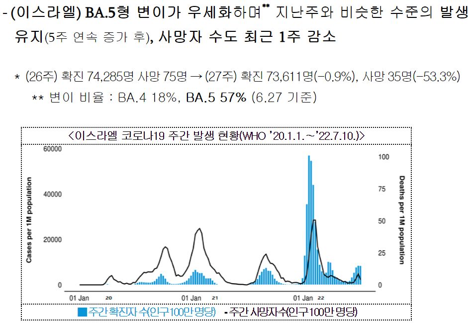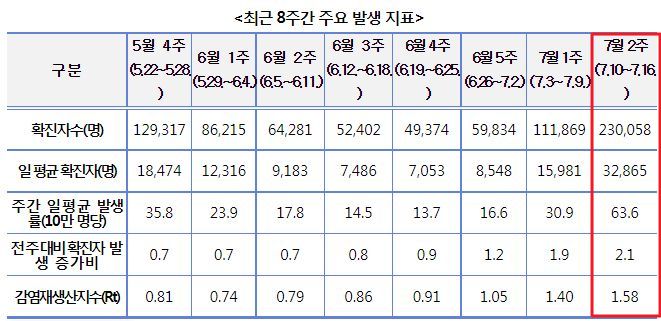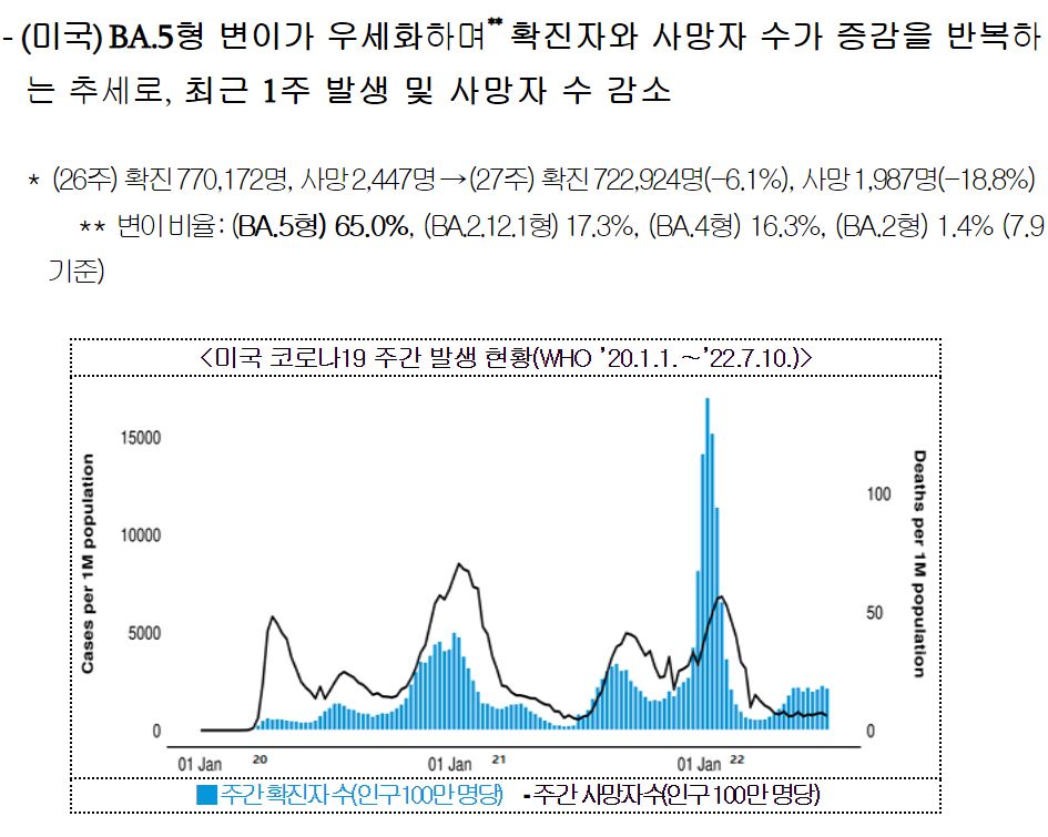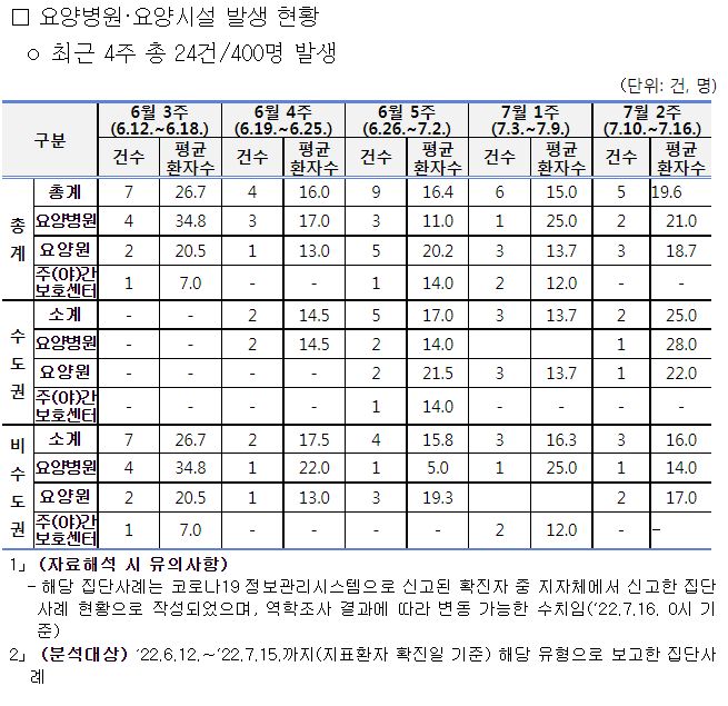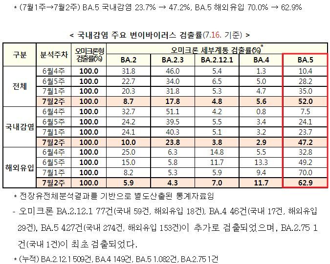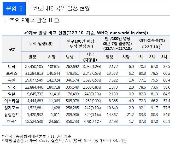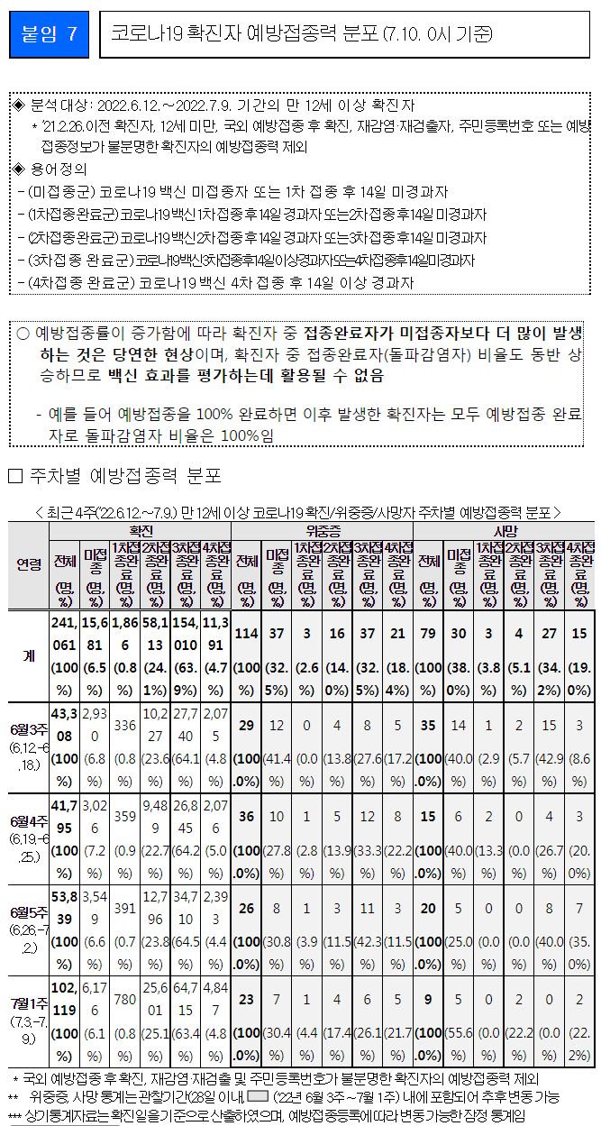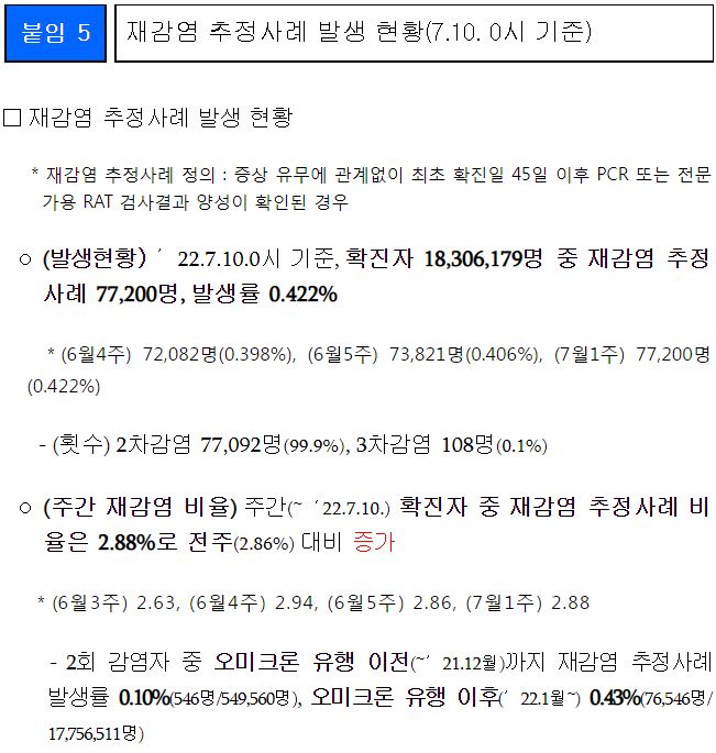 코로나19(2022.7.19) 주간 발생 동향 및 위험도 평가: 위험도 중간. 확진자 증가. 예방접종 정보 등 본문