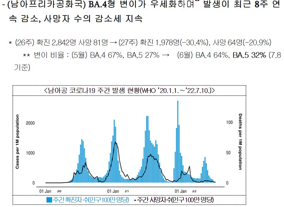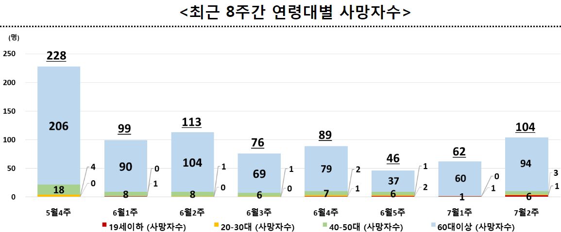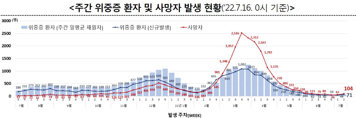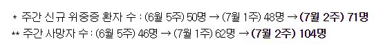 ○ 주간 신규 위중증 환자 71명, 사망자 104명