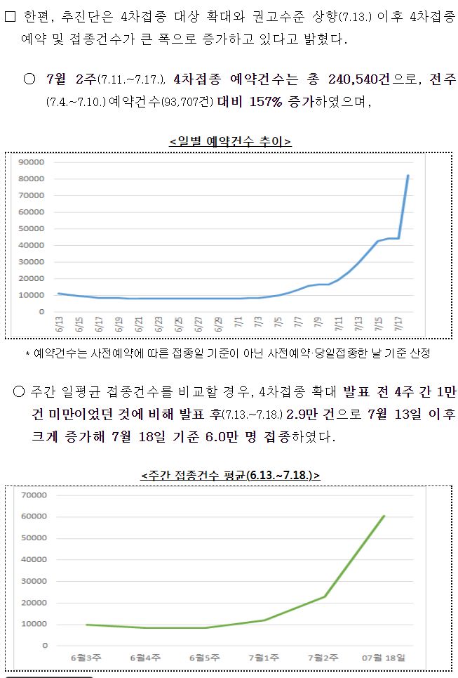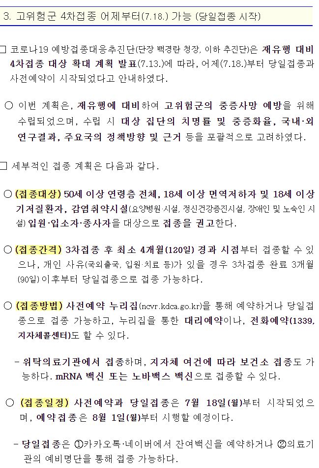 □ 고위험군 4차접종 어제부터(7.18.) 가능