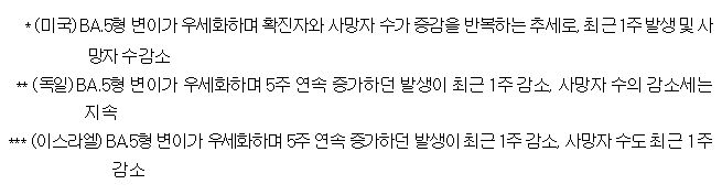 외국 몇 개 나라의 유행 통계 일부