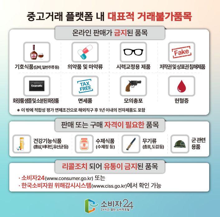 중고거래 플랫폼 내 거래불가품목 주의 (한국소비자원) 본문