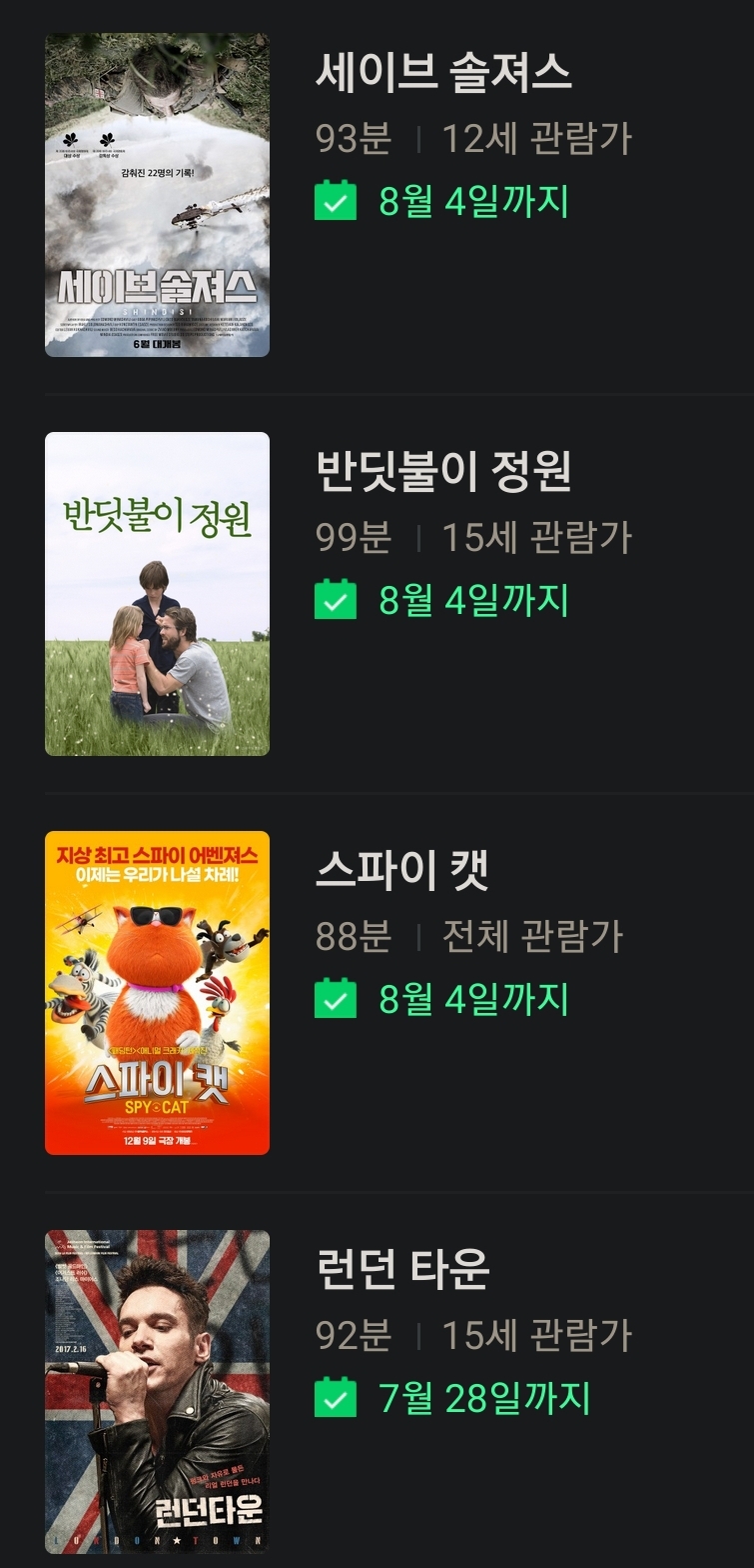 | (네이버시리즈온 무료영화) 운디네, 그리고 우린 춤을 추었다, 우리는 그곳에 있었다, 리클레임, 스파이 캣, 세이브 솔저스 등 (0) | 2022.07.29 |