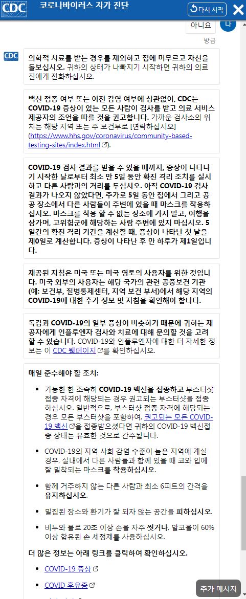 미국CDC 코로나바이러스 자가 진단 (링크) 본문
