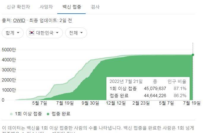 | 코로나19집계(2022.7.21. 0시기준): 확진 +7.1만, 사망 +17명, 재택치료 30만(집중관리 1.1만) /:/주간 예방접종 통계 (0) | 2022.07.21 |