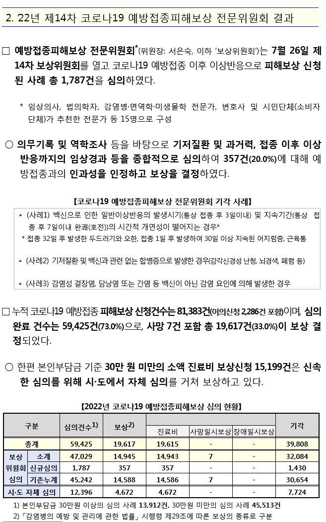 코로나19(2022.7.28) ’22년 제14차 코로나19 예방접종피해보상 전문위원회 결과 본문