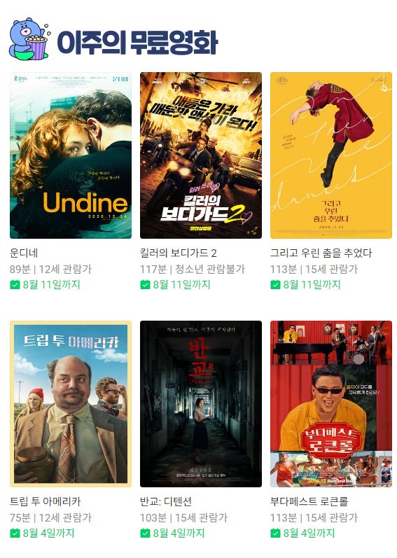 (네이버시리즈온 무료영화) 운디네, 그리고 우린 춤을 추었다, 우리는 그곳에 있었다, 리클레임, 스파이 캣, 세이브 솔저스 등 본문
