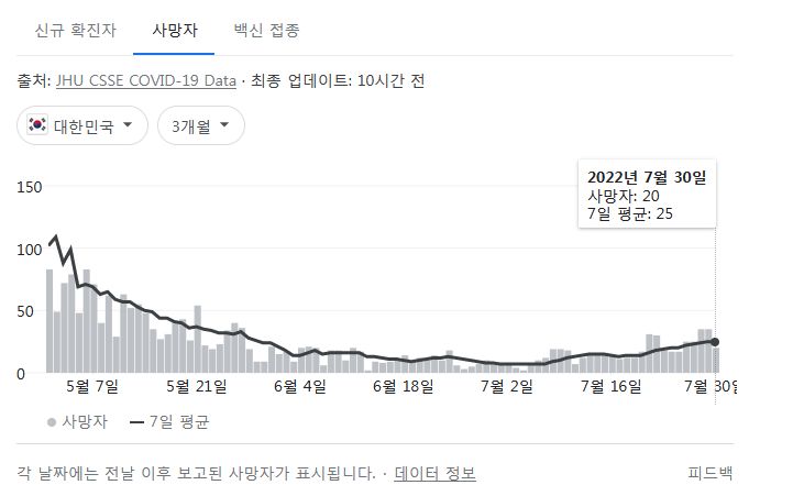 코로나19집계(2022.7.31. 0시기준): 확진 +7.4만, 사망 +20명, 위중증병상가동률 29%, 재택치료 49만(집중관리 2.2만) 본문