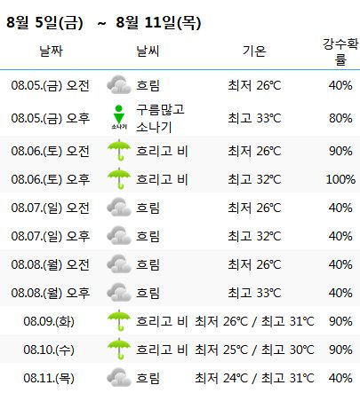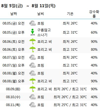 대전 중기날씨(기상청 일기예보)