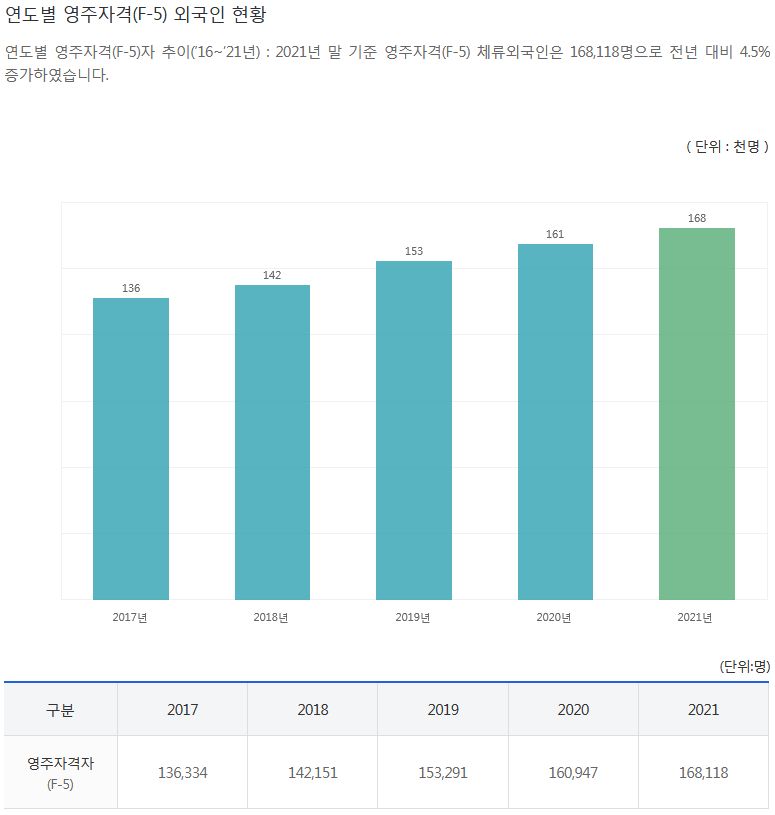 ㅡ 영주자격(F-5) 외국인은 약 17만 명입니다.