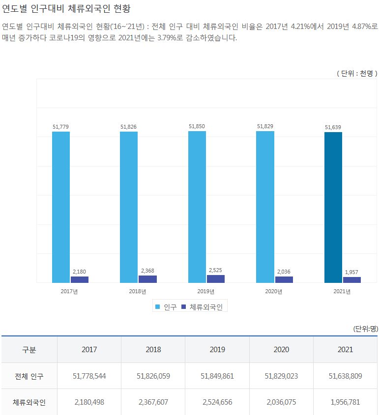 ㅡ 전체 인구대비 체류외국인비율은 약 3.8%입니다.