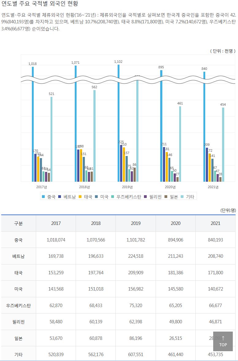 법무부 출입국통계 웹사이트(체류외국인 집계) 본문