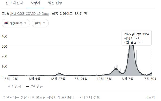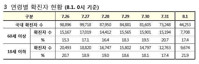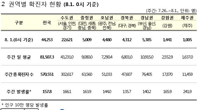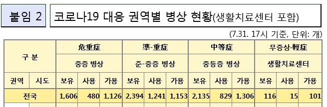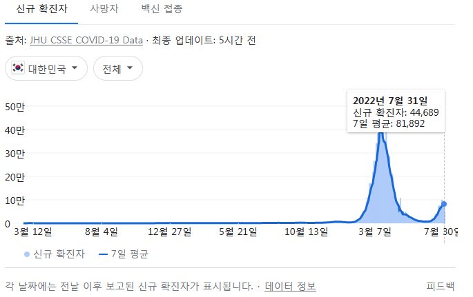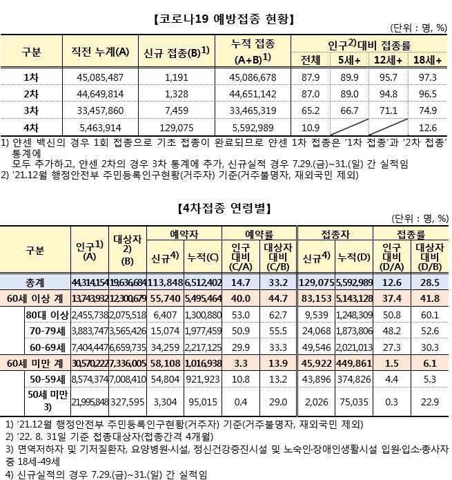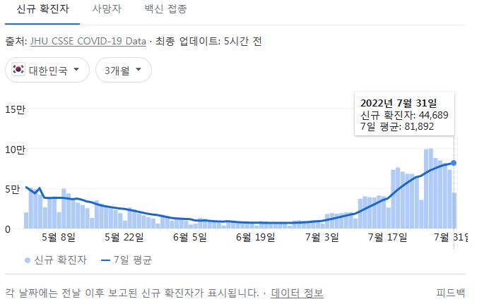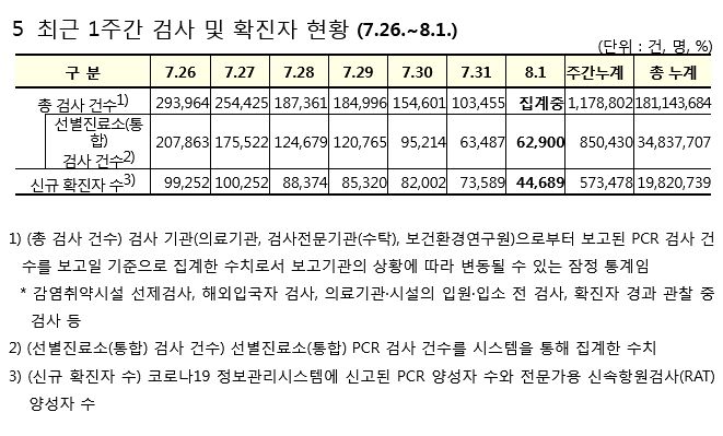 코로나19집계(2022.8.1. 0시기준): 확진 +4.4만, 사망 +21명, 위중증병상가동률 30%★, 재택치료 30만(집중관리 2.1만) 본문