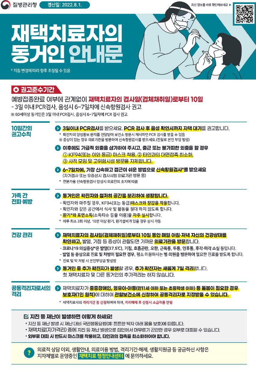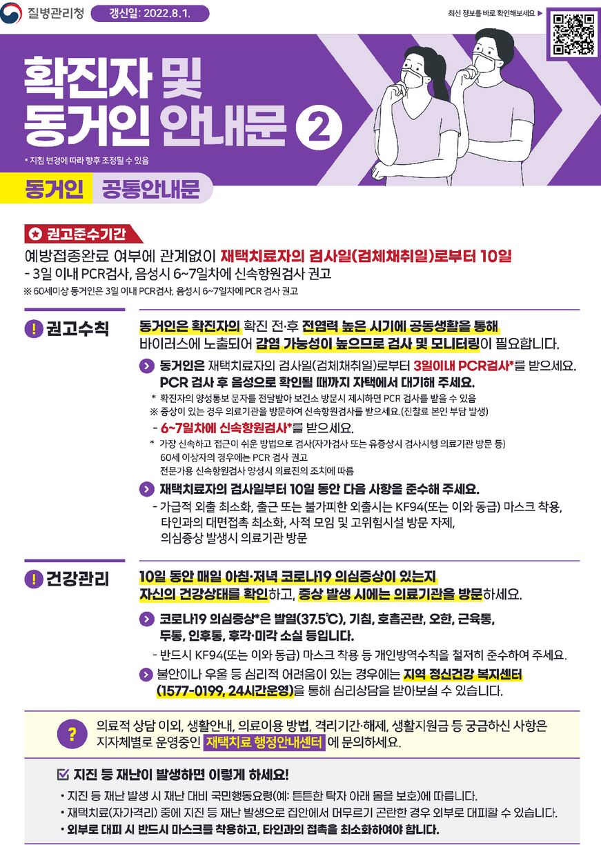 확진자 및 동거인 안내문: 동거인 공통안내문 2022.8.1.