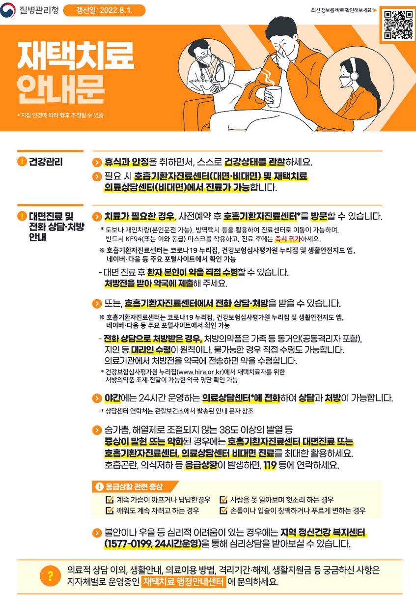 코로나19(2022.8.1. 기준): 확진자 및 동거인 안내문, 재택치료 안내문, 재택치료자의 동거인 안내문 본문
