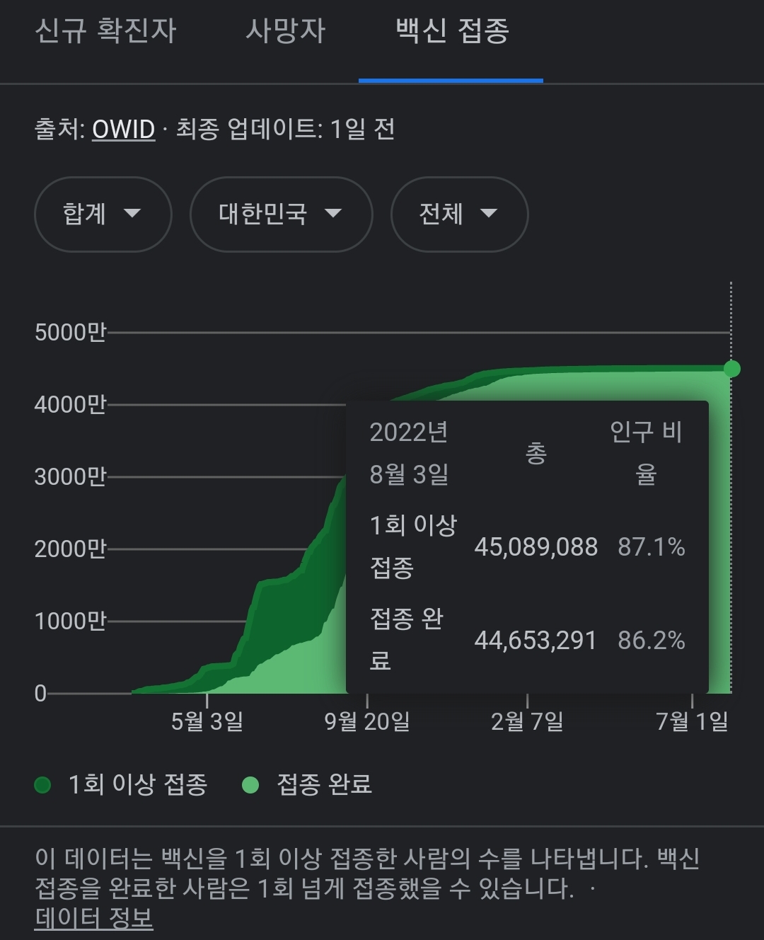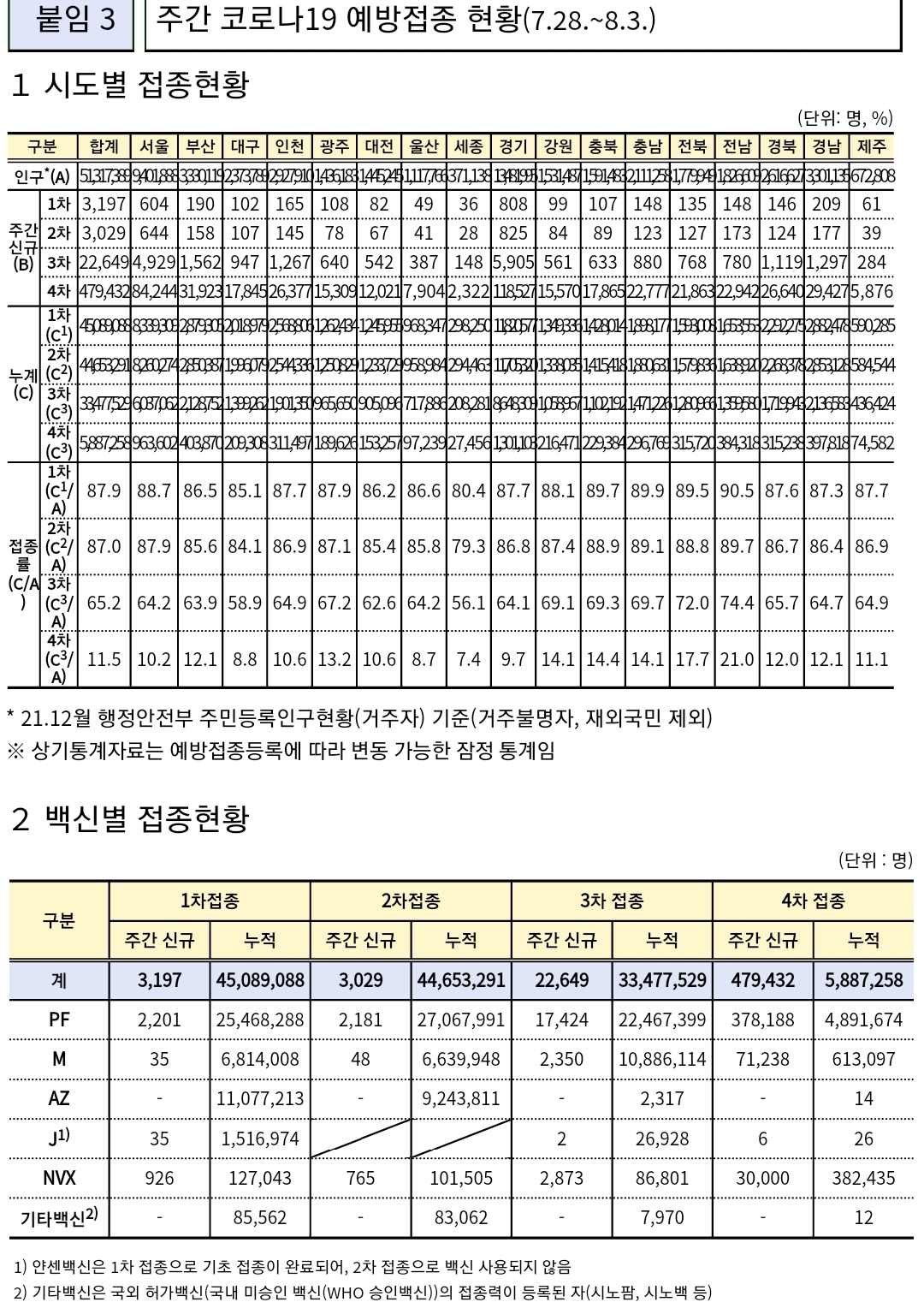 | 코로나19(2022.8.4) 예방접종 추진 현황 및 이상반응 신고현황 (0) | 2022.08.05 |