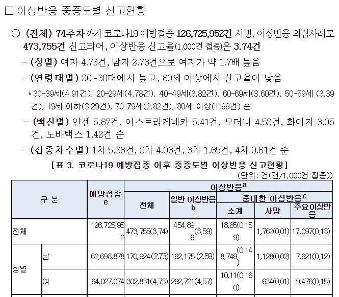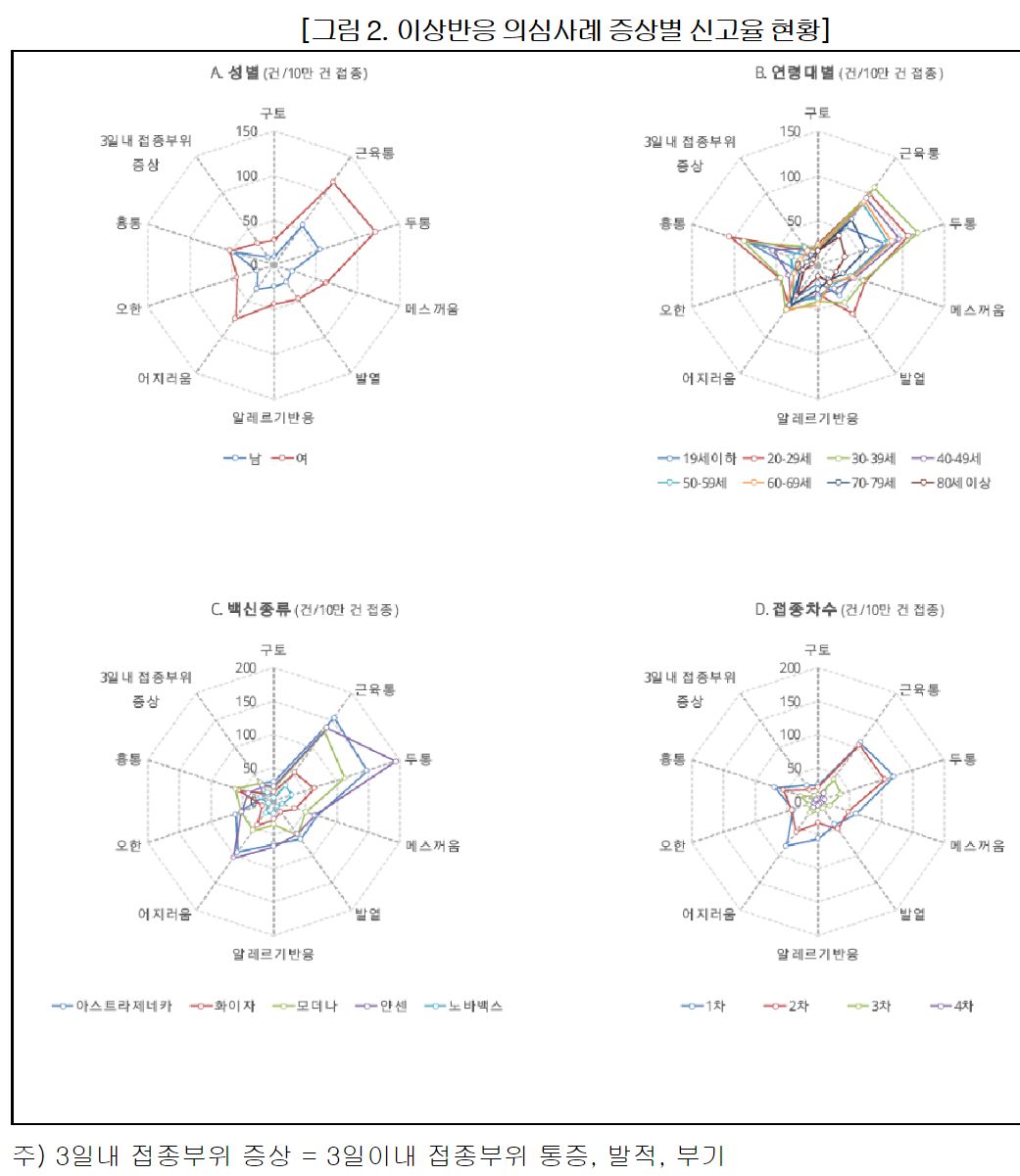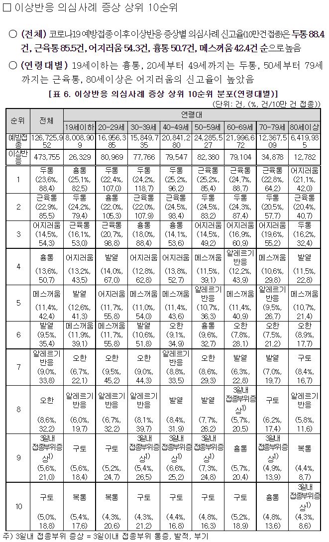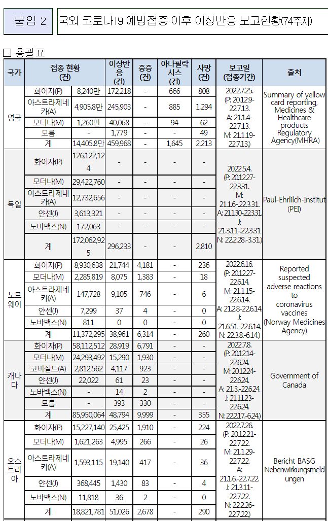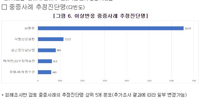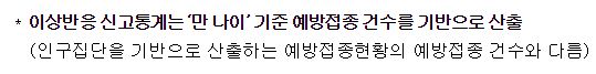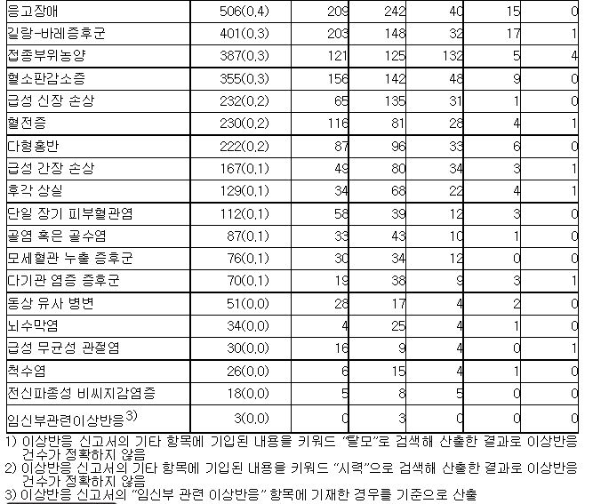 ㅡ 아나필락시스, 심낭염과 심근염, 혈소판감소성 혈전증, 길랑-바레 증후군 이상반응집계표