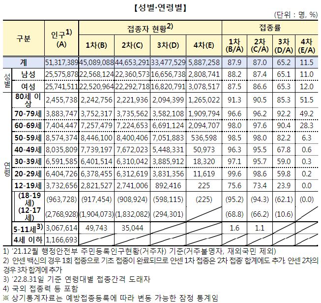 코로나19(2022.8.4) 예방접종 추진 현황 및 이상반응 신고현황 본문