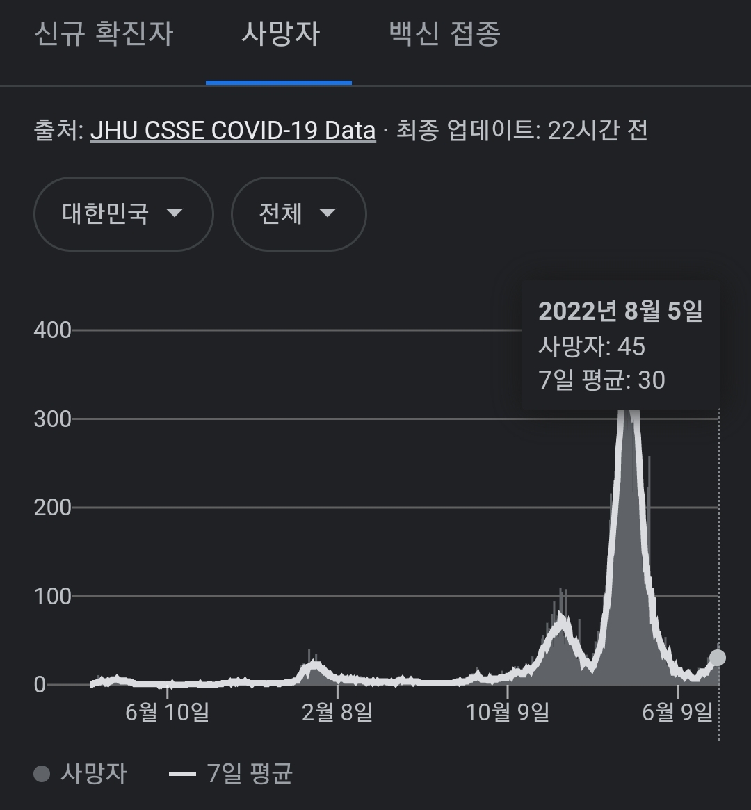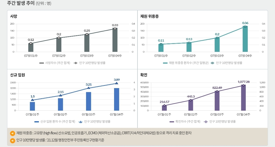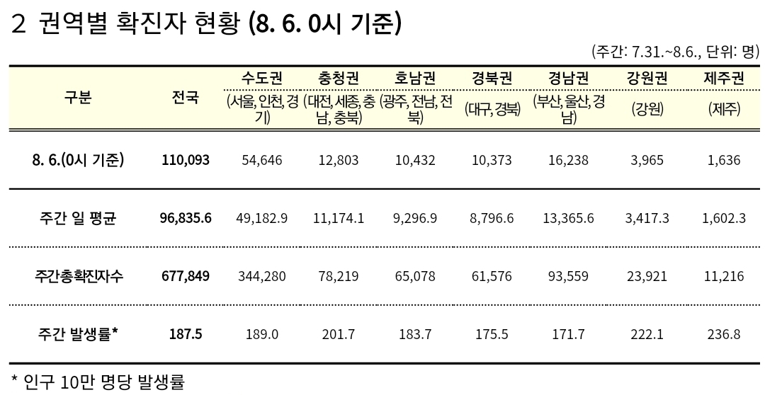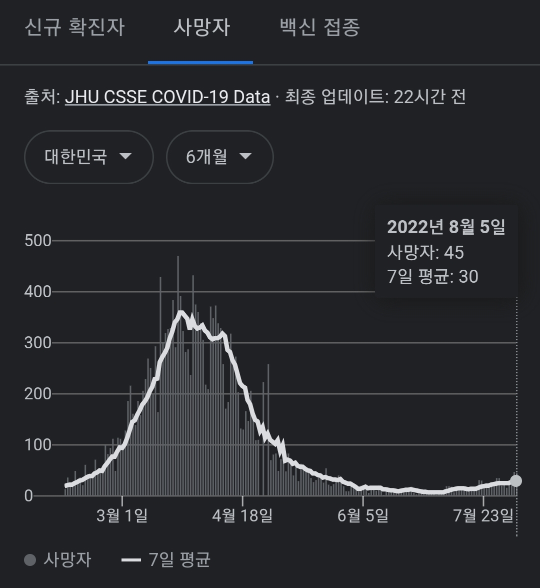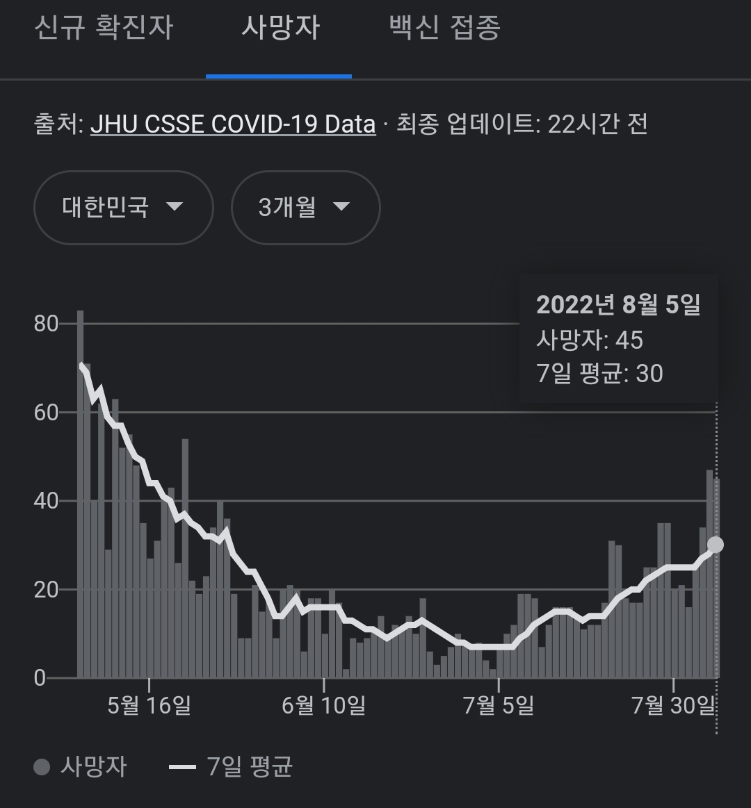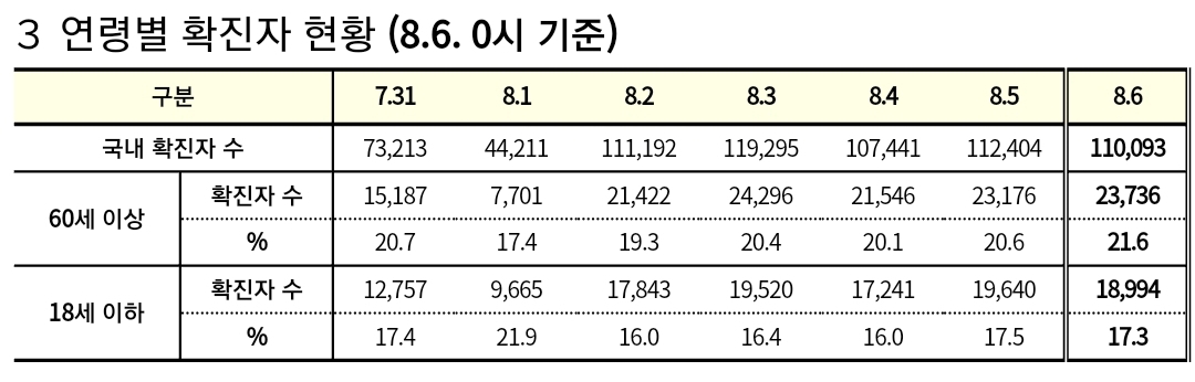 코로나19집계(2022.8.6. 0시기준) 확진 +11만, 사망 +45명, 위중중병상가동률 35%, 재택치료 57만(집중관리 3.6천) 본문