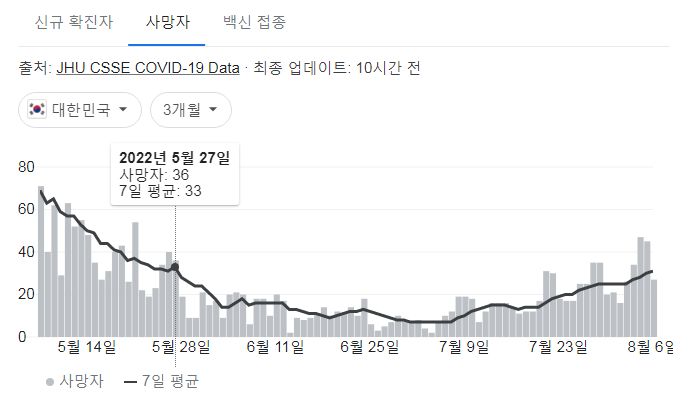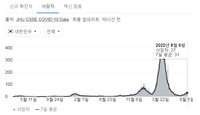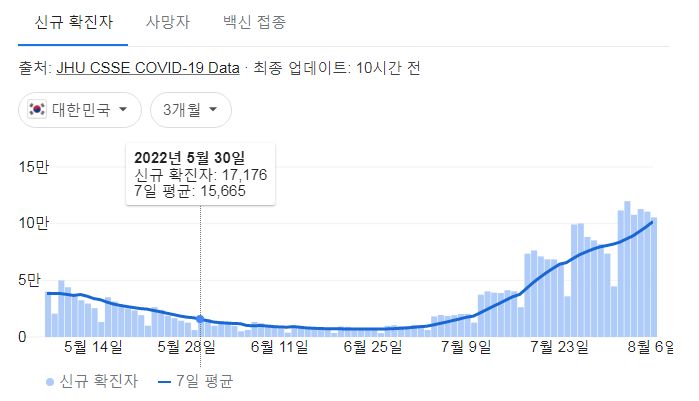 | 코로나19(2022.8.9) 주간 유행동향: 확진자 22%증가 (0) | 2022.08.09 |