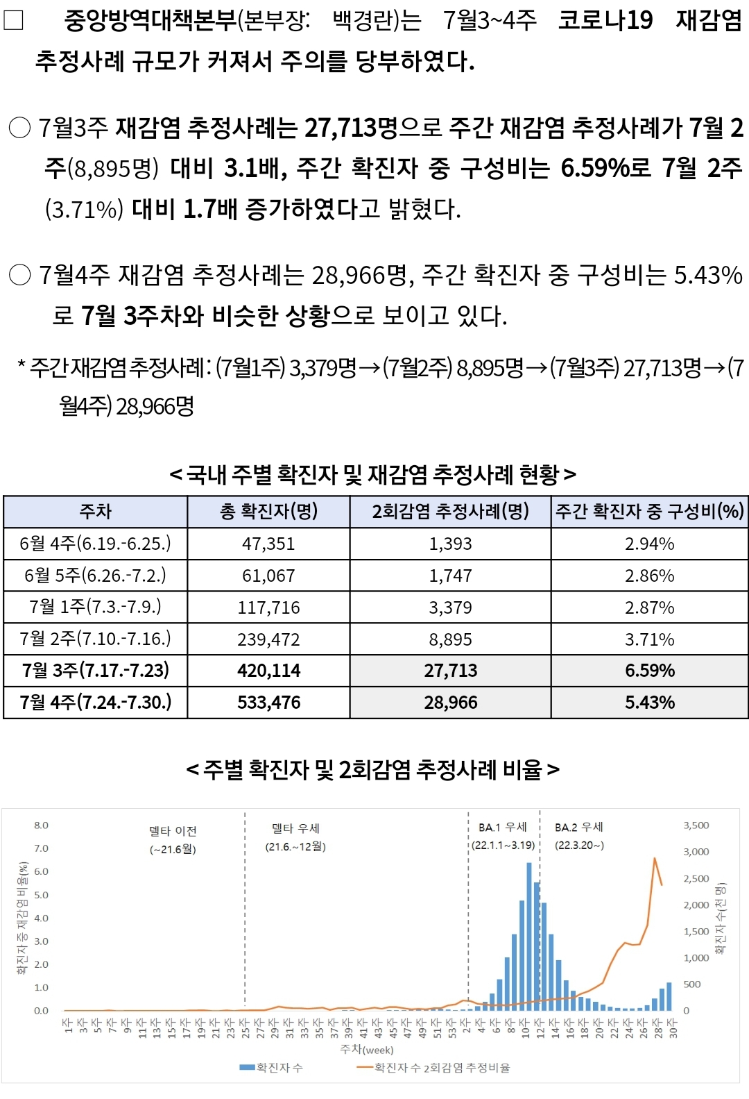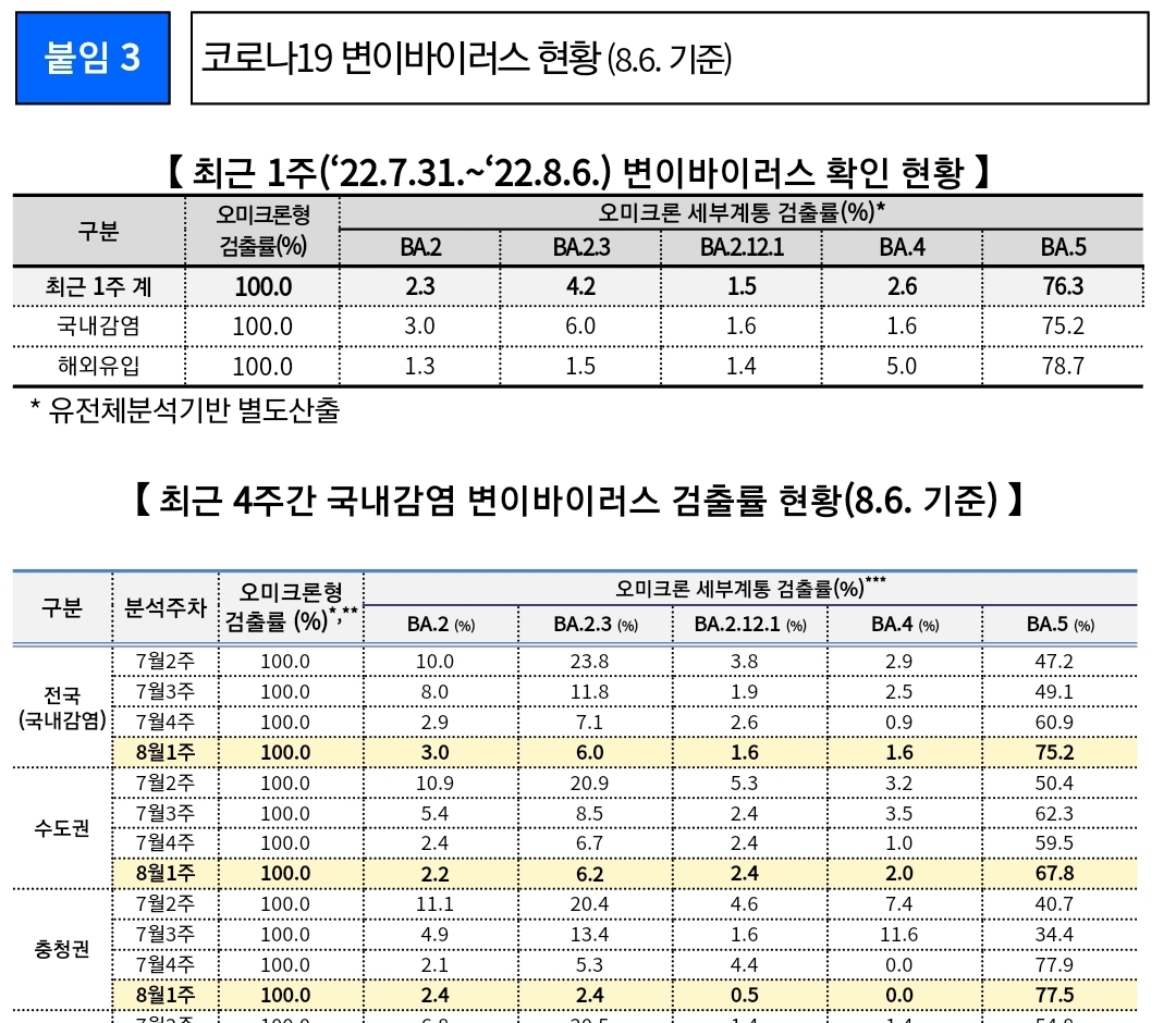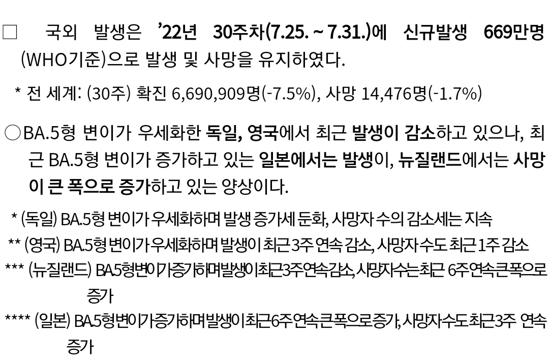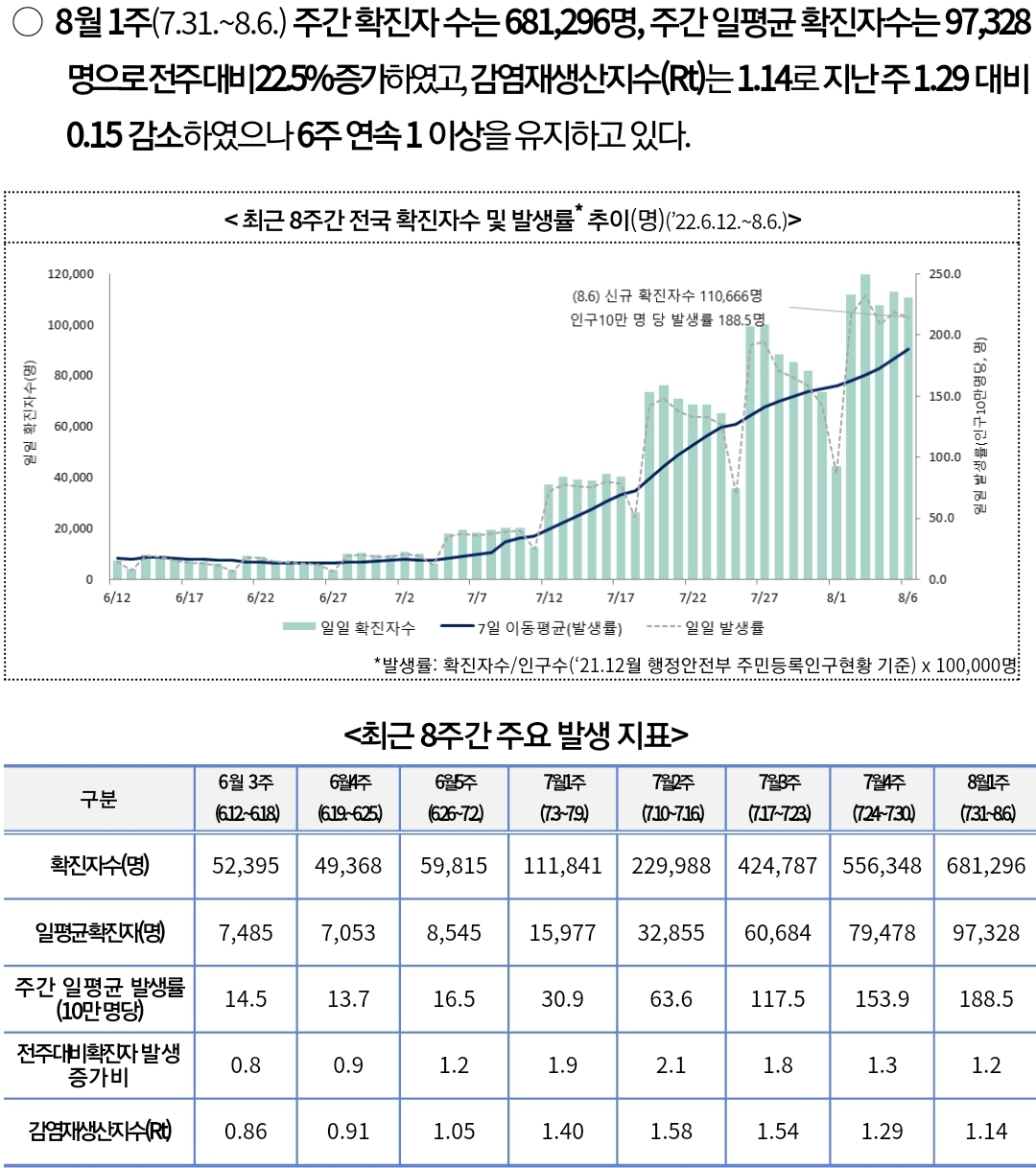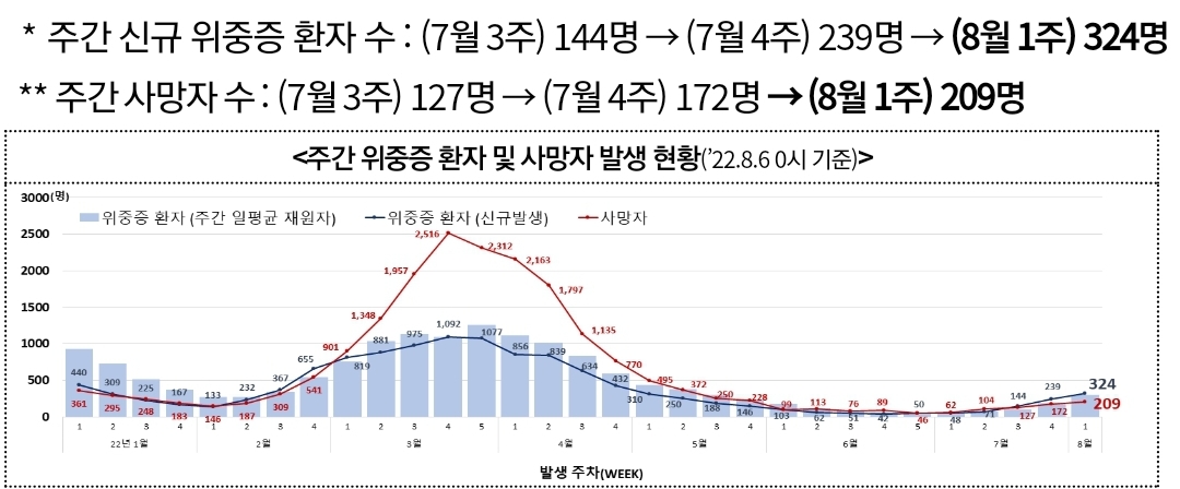 코로나19(2022.8.9) 주간 유행동향: 확진자 22%증가 본문