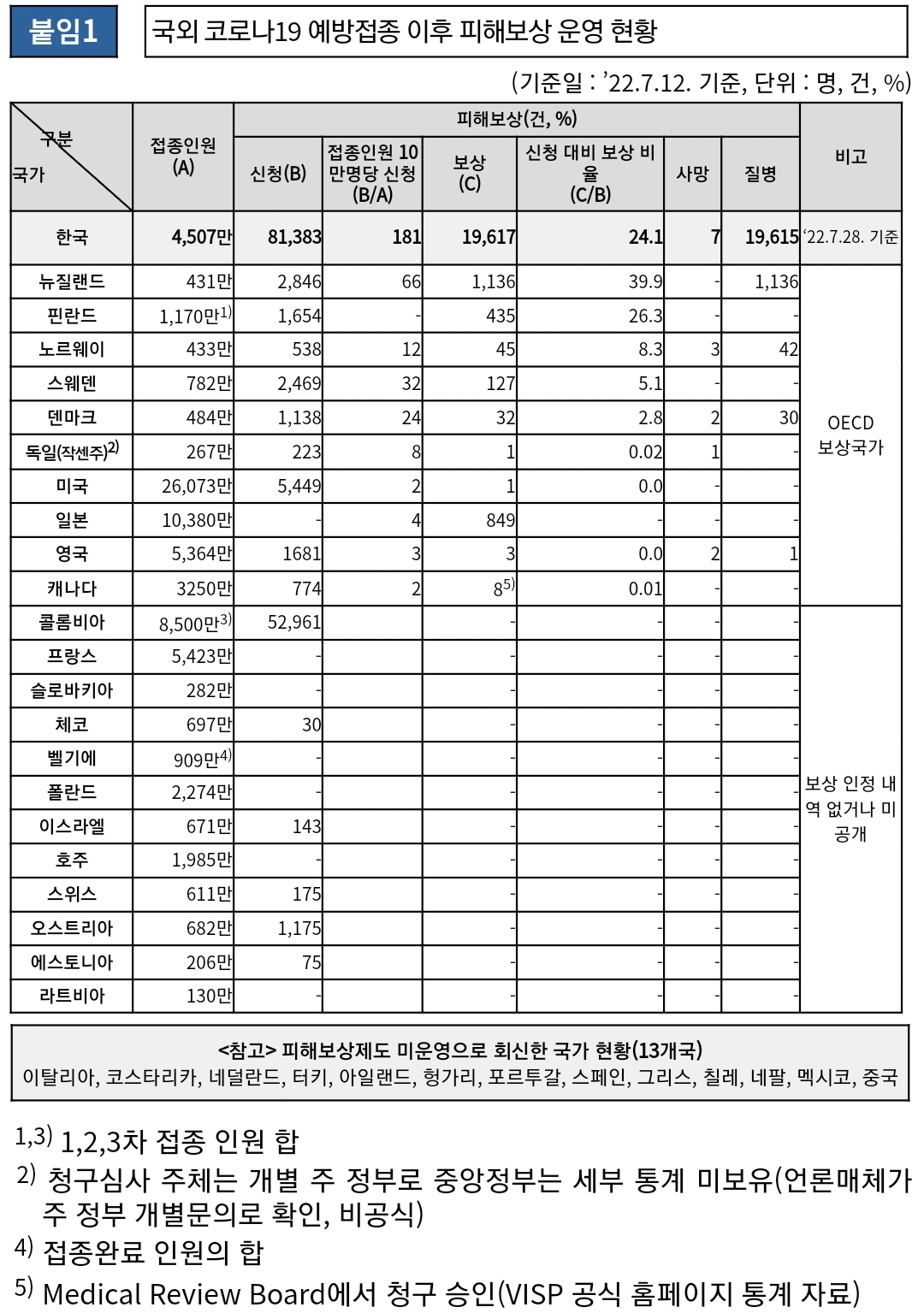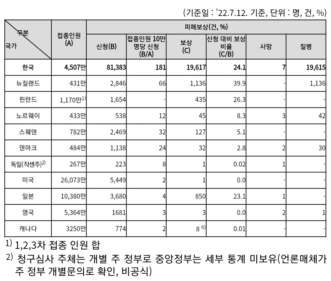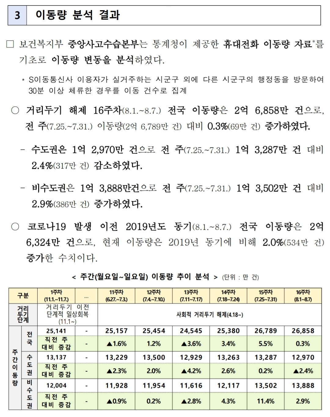 코로나19 보도자료: 백신 이상반응 심의보상통계표, 주간 이동량분석 본문