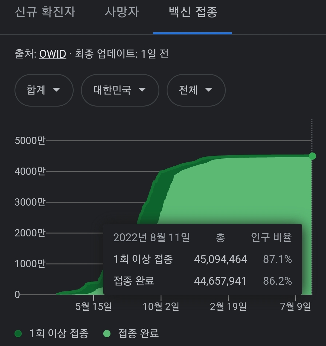 | 코로나19집계(2022.8.15. 0시기준) 확진 +6.2만, 사망 +50명, 중환자병상가동률 46%, 재택치료 ? (0) | 2022.08.16 |