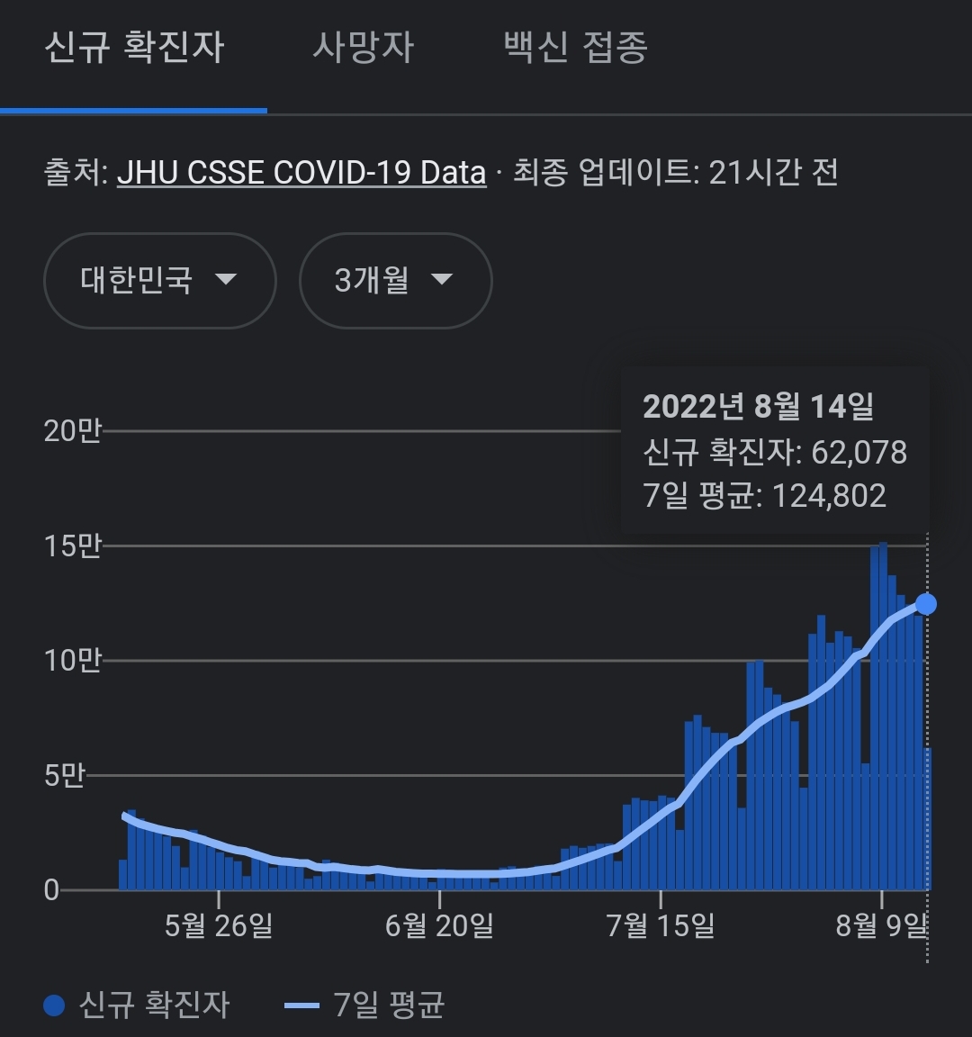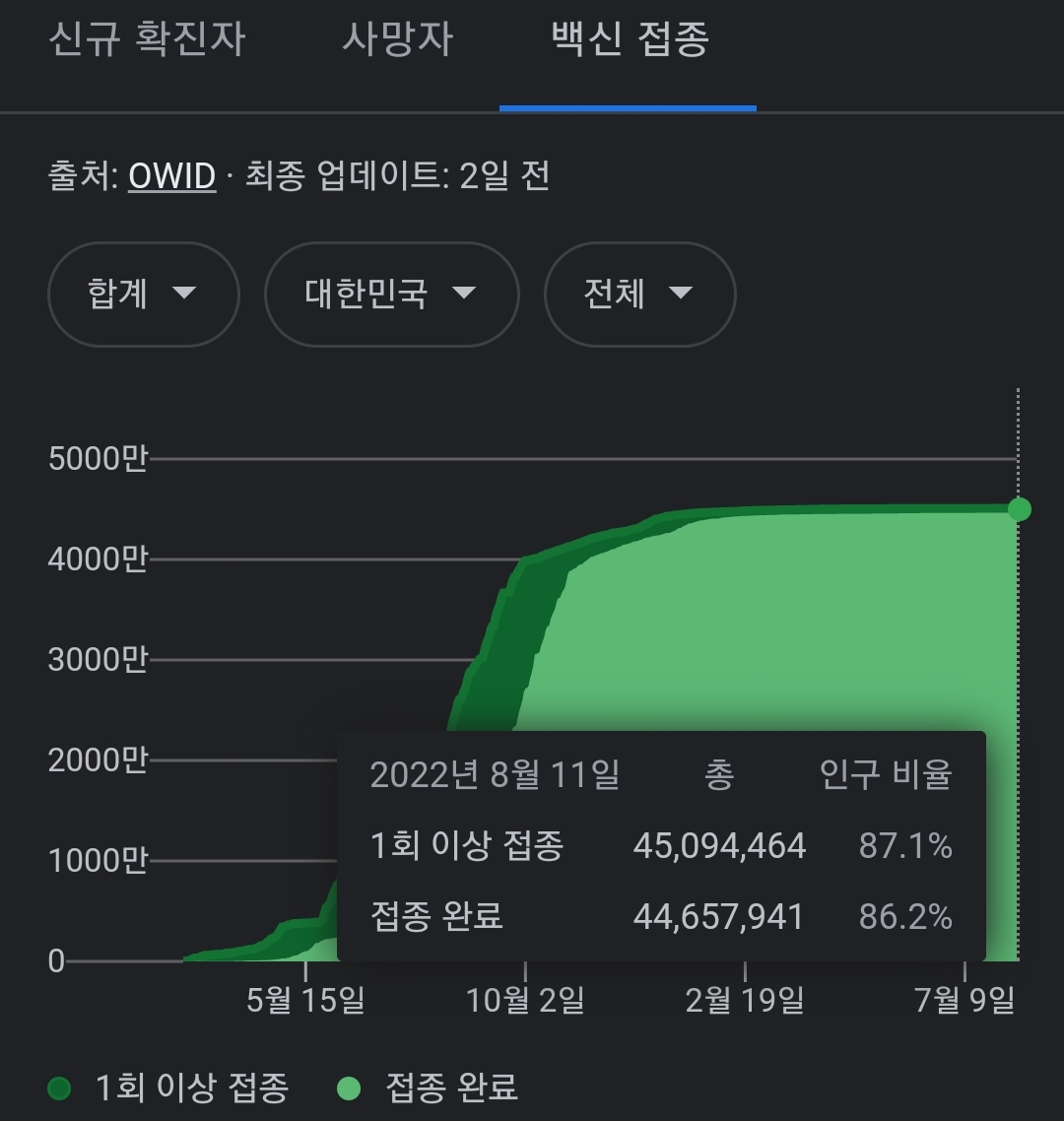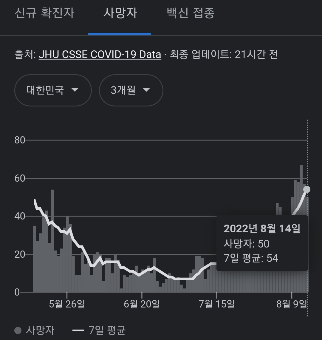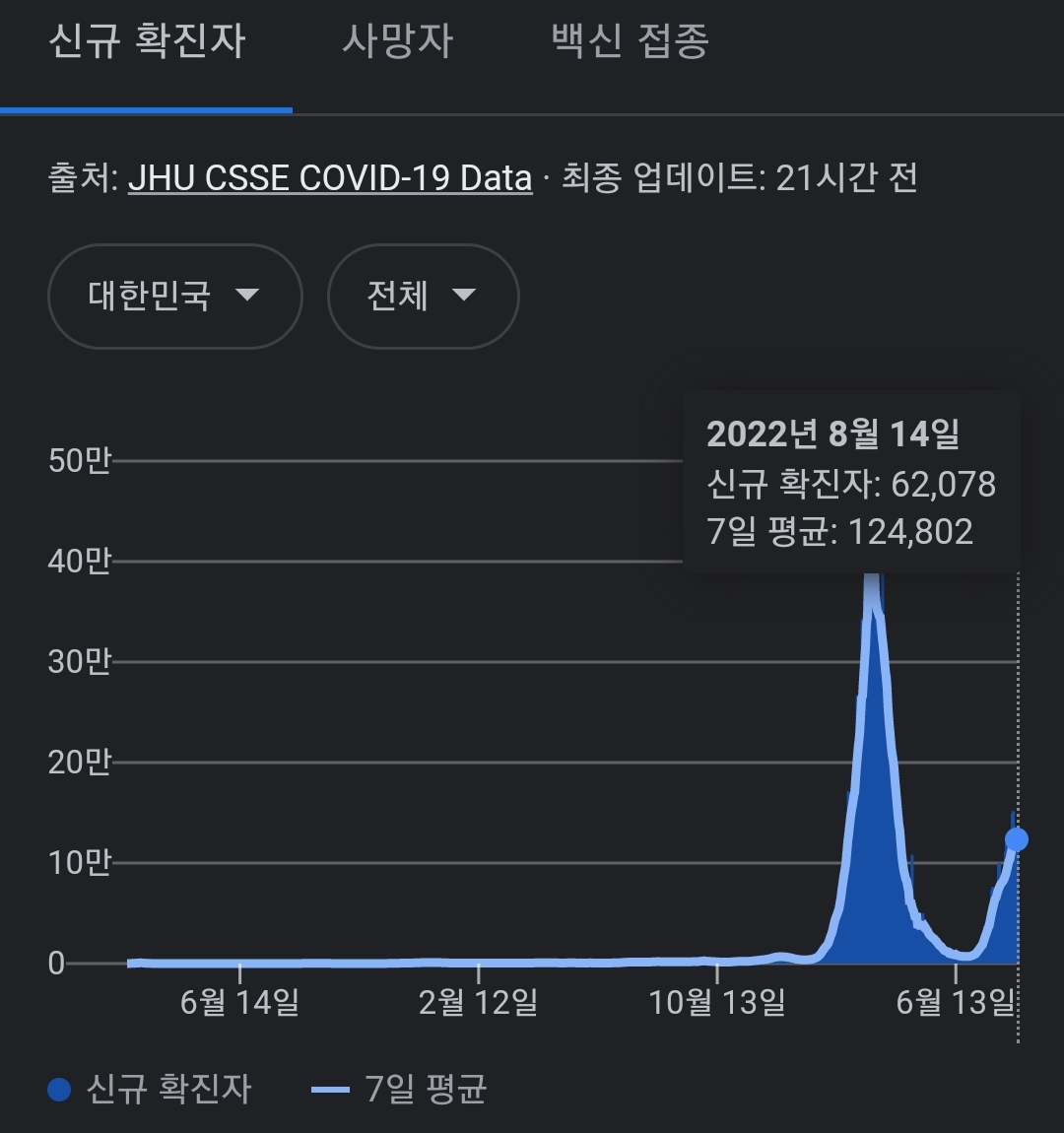 코로나19집계(2022.8.15. 0시기준) 확진 +6.2만, 사망 +50명, 중환자병상가동률 46%, 재택치료 ? 본문
