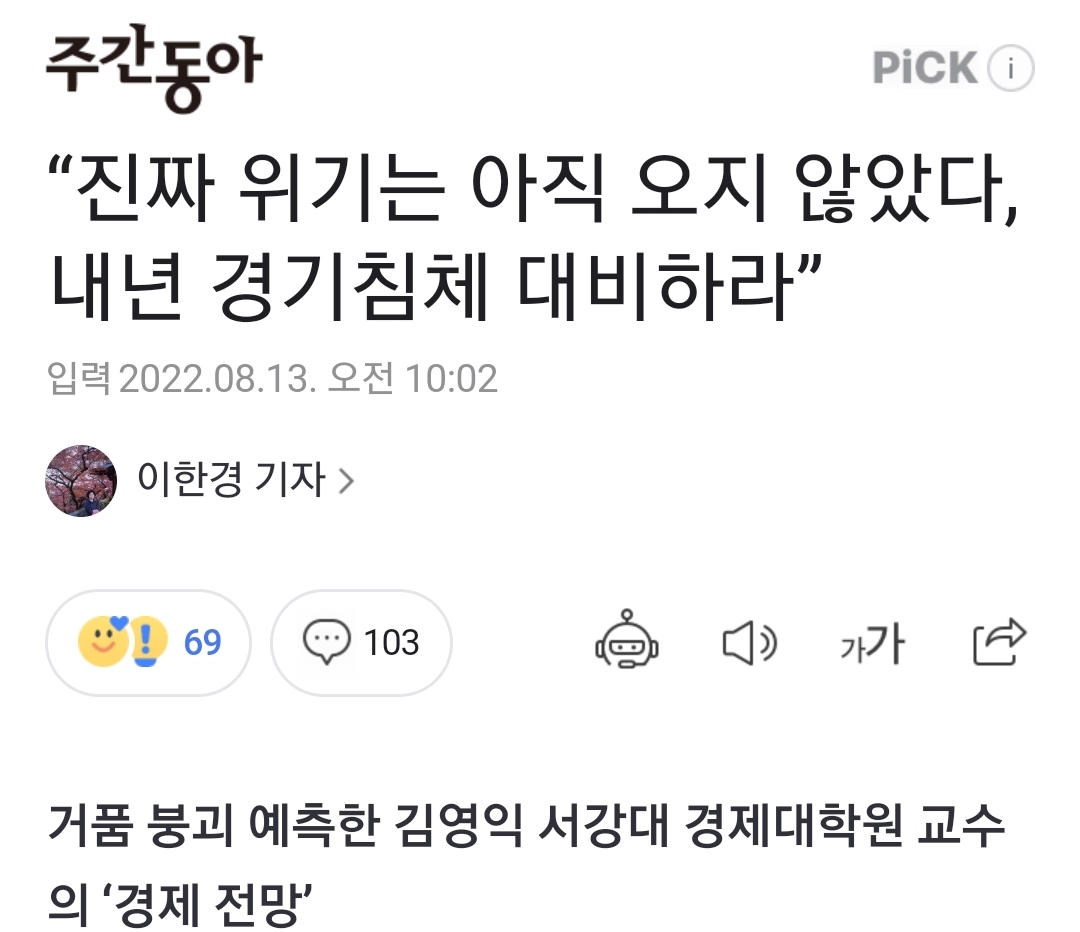 한국의 닥터 둠(Dr. Doom)? 내년 경기침체를 말하는 학자 기사..... . 본문