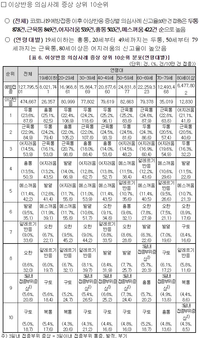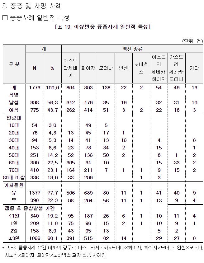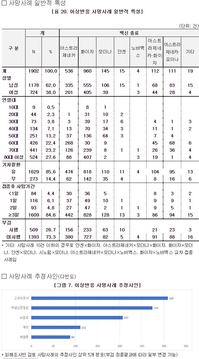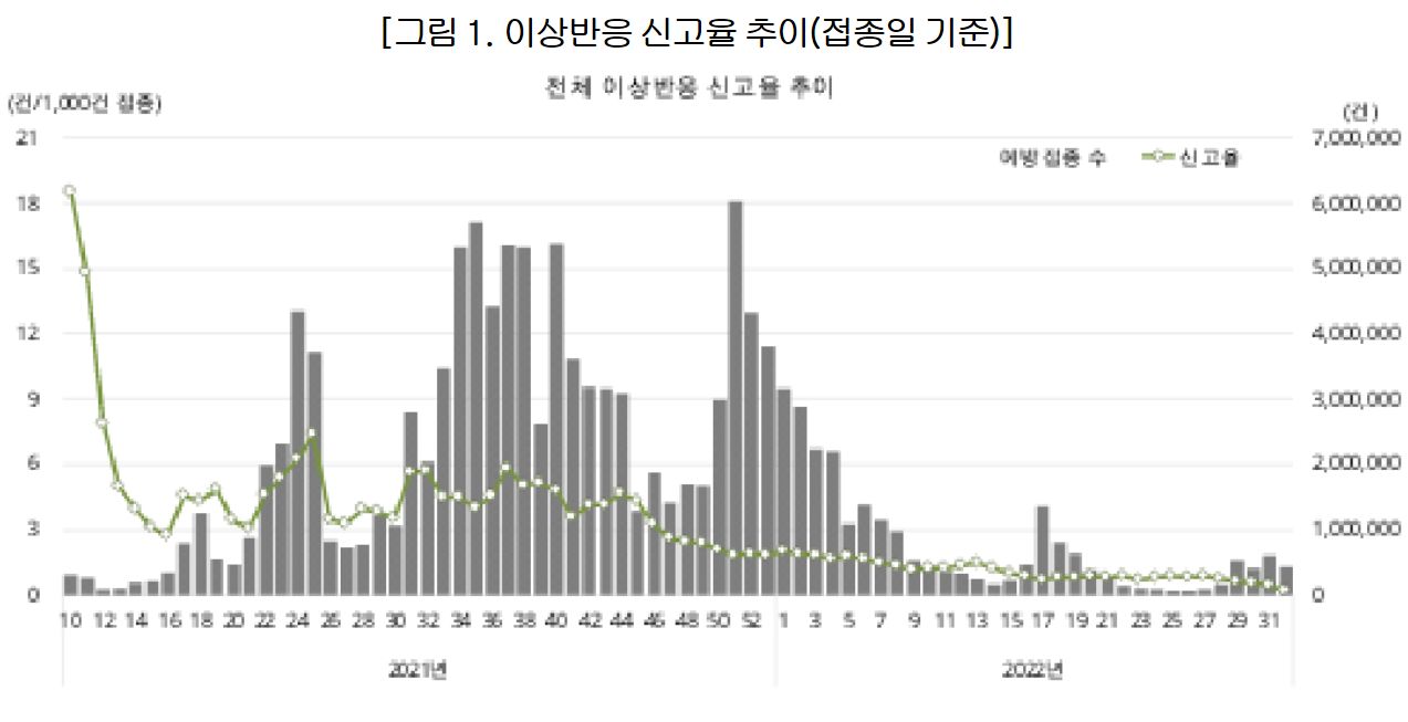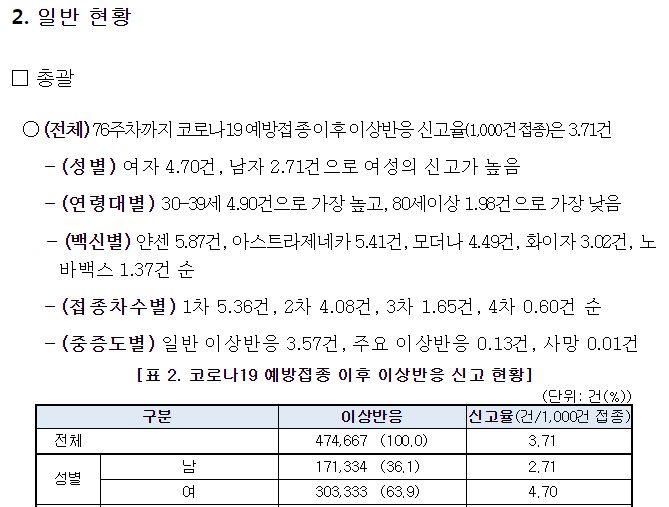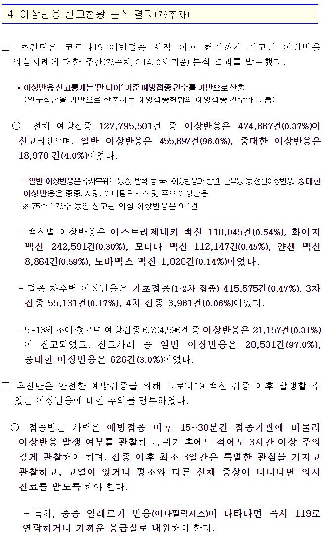 코로나19 예방접종 이후 이상반응 분석, 1주차 ~ 76주차 (2021.2.26. ~ 2022.8.13.)