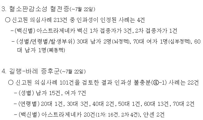 주요 특별관심 이상반응 의심사례 인과성 검토 결과(1~67차)