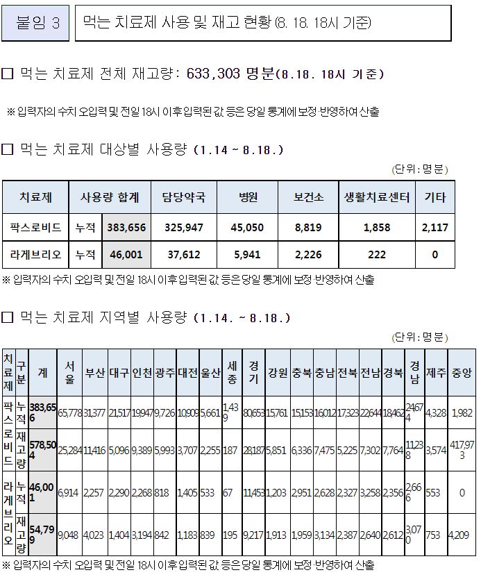 먹는 치료제(팍스로비드, 라게브리오) 사용현황