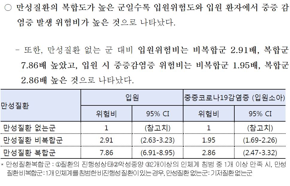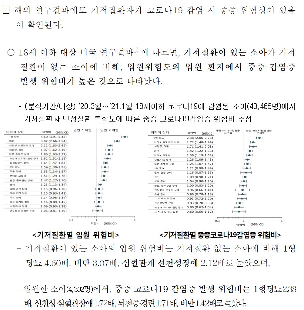 ㅡ 사망자 중 기저질환자는 절반 정도 (이건 큰 의미가 있나? 어떻게 읽어야 하는지) 그런데 미국 연구결과를 보면 기저질환이 있는 경우 중증으로 악화될 위험이 크다고.