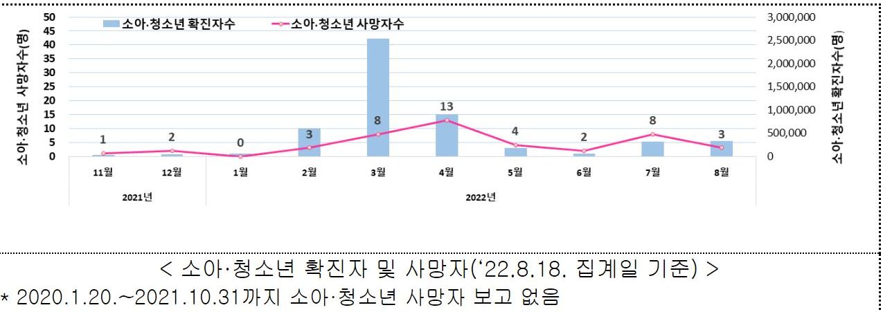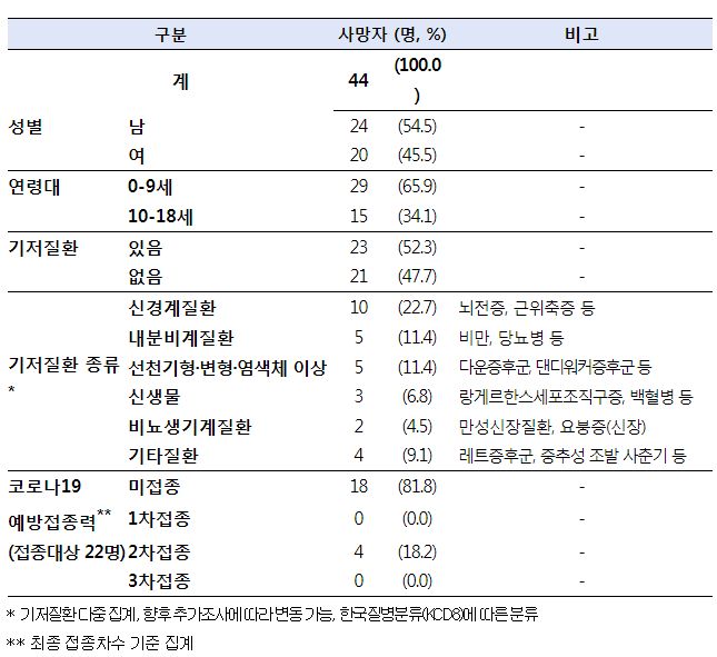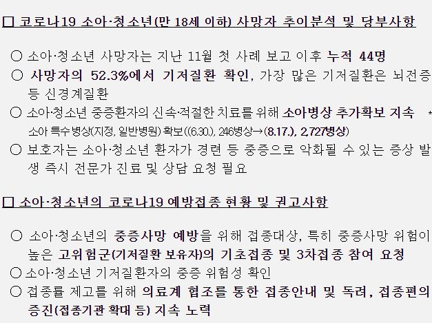 ㅡ 소아청소년 코로나19사망자는, 작년 11월 이후 집계로 (그 연령대 인구에 비하면 매우 적은) 44명