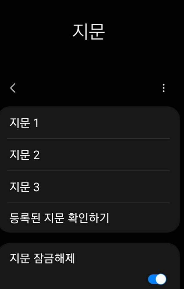 삼성전자 갤럭시 스마트폰, 안드로이드OS 8, 9, 11(11은 One UI 3.1)에서 지문인식 갯수는 3개입니다. 확인했습니다.