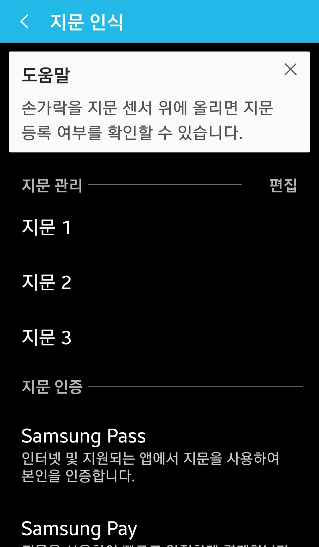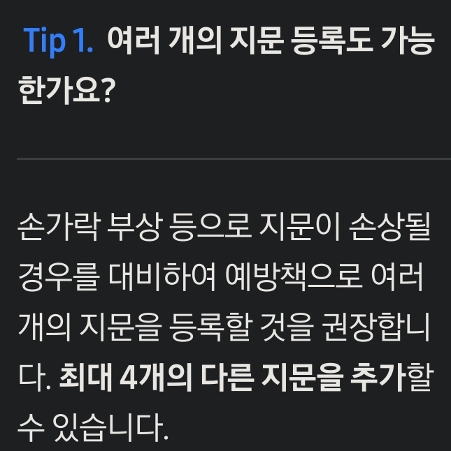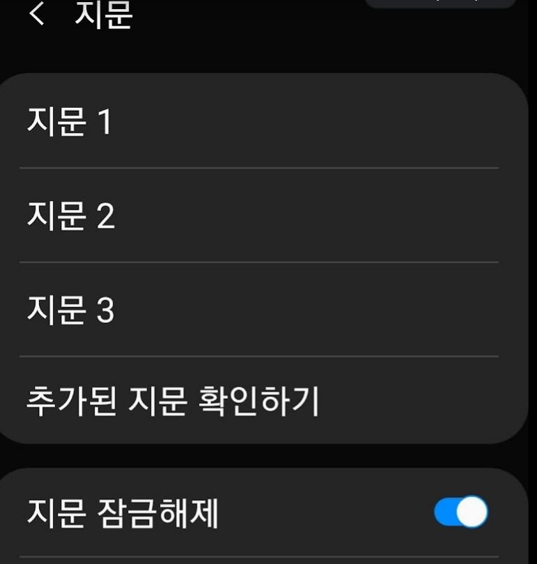 갤럭시 지문등록 갯수는 4개라는데.. 본문