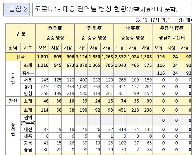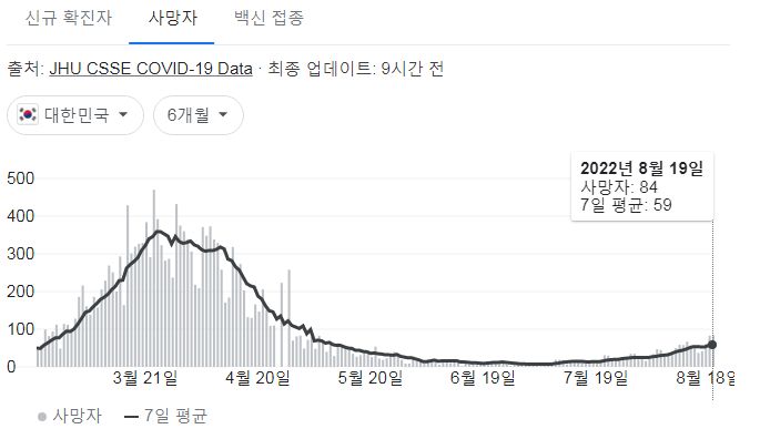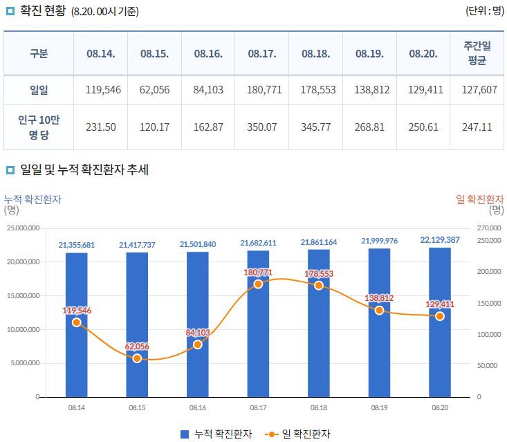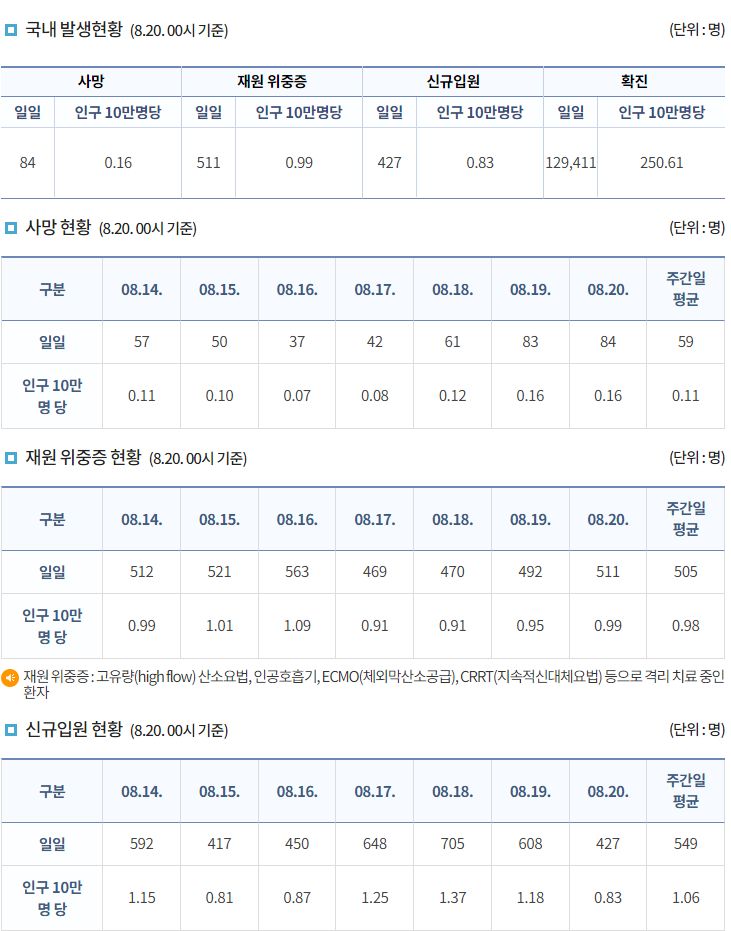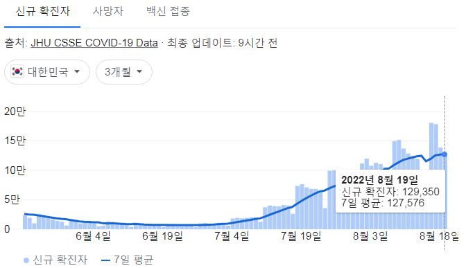 코로나19(2022.8.20. 0시기준) 확진 +13만, 사망 +84명, 위중증병상가동률 45%, 재택치료 75만 본문