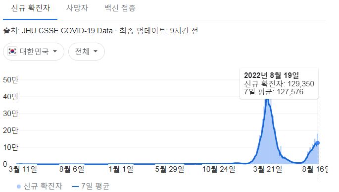 | 코로나19(2022.8.22. 0시기준) 확진 +5.8만, 사망 65명, 위중증병상가동률 47%, 재택치료 75만 (0) | 2022.08.22 |