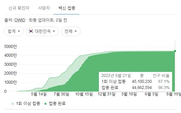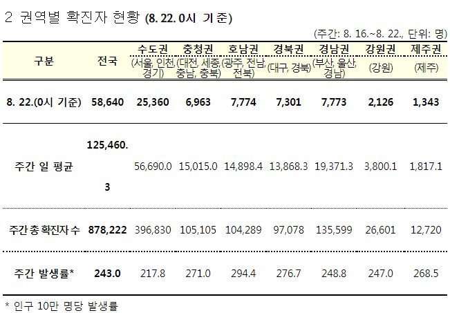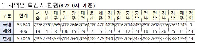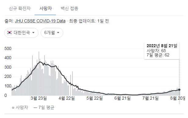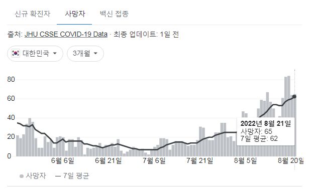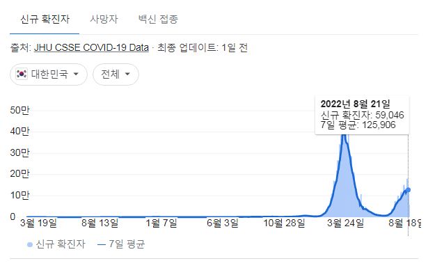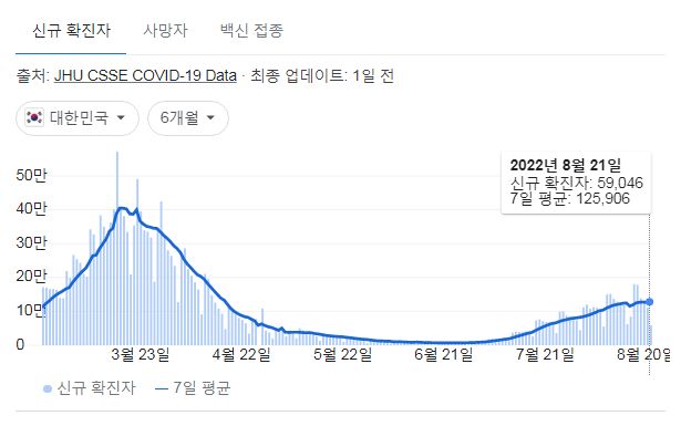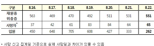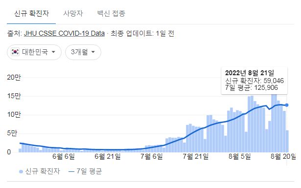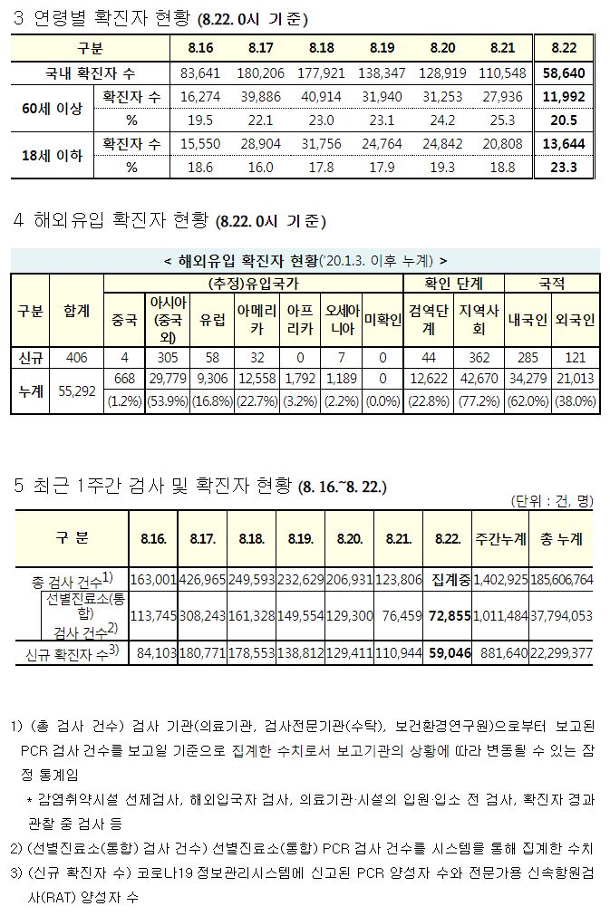 코로나19(2022.8.22. 0시기준) 확진 +5.8만, 사망 65명, 위중증병상가동률 47%, 재택치료 75만 본문