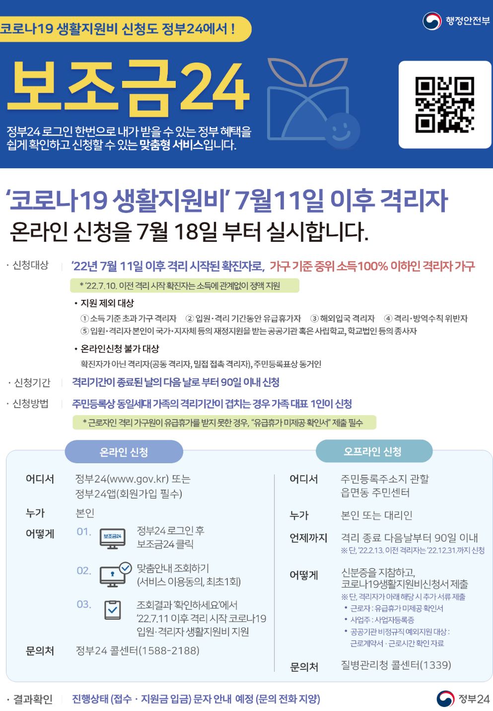 생활지원비 온라인 신청 안내문(정부24)