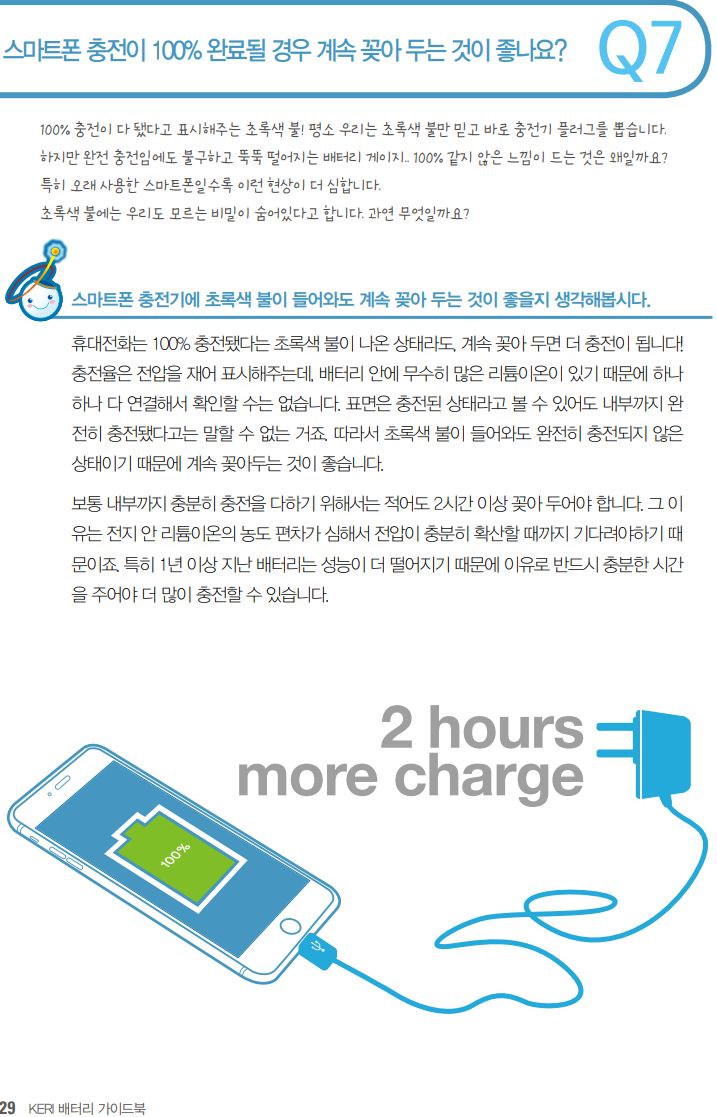 스마트폰 충전이 100% 완료될 경우 계속 꽂아 두는 것이 좋나요?