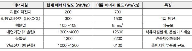 2015년 현재 상용 리튬이차전지의 에너지 밀도와 이론 에너지 밀도(Wh/kg)