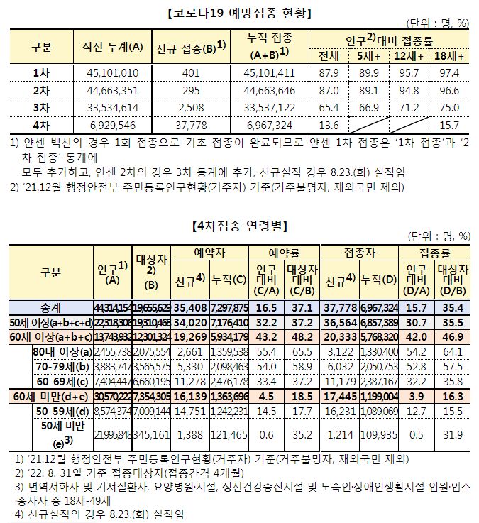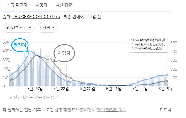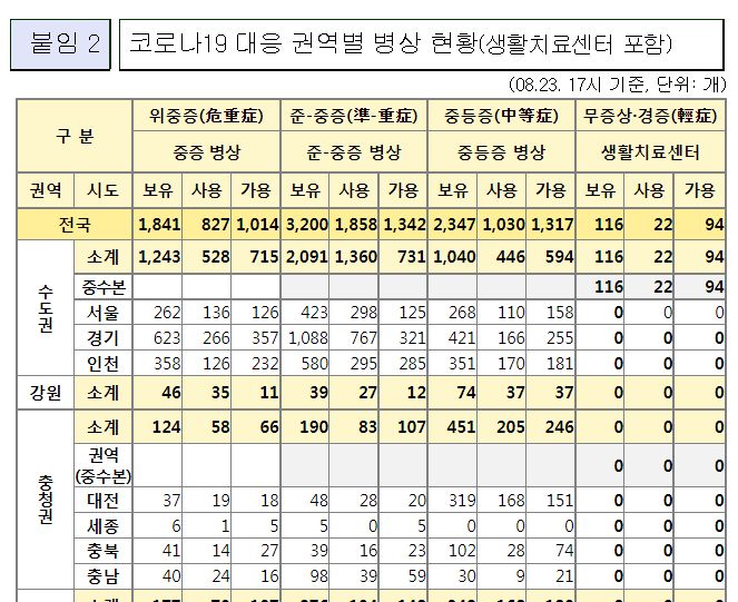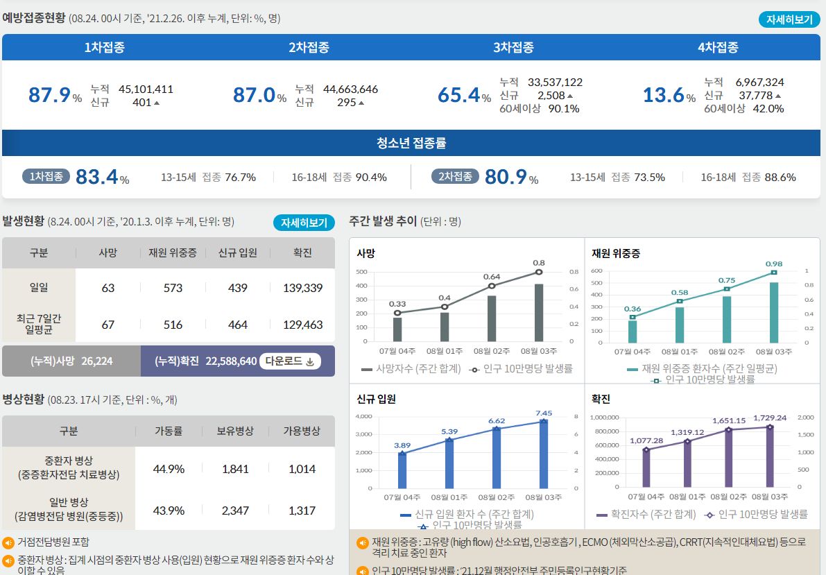 코로나19집계(2022.8.24. 0시기준) 확진 +14만, 사망 +63명, 위중증병상가동률 45%, 재택치료 70만 본문