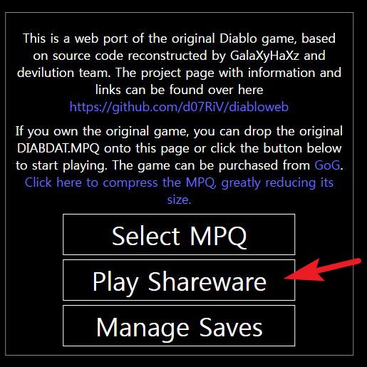 Shareware release can be made into the full version by dropping diabdat.mpq on browser.
