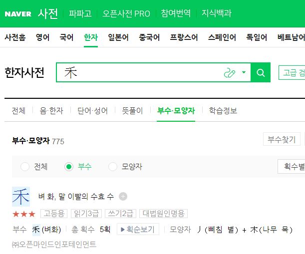 일단 한자사전에서 한자를 찾고,